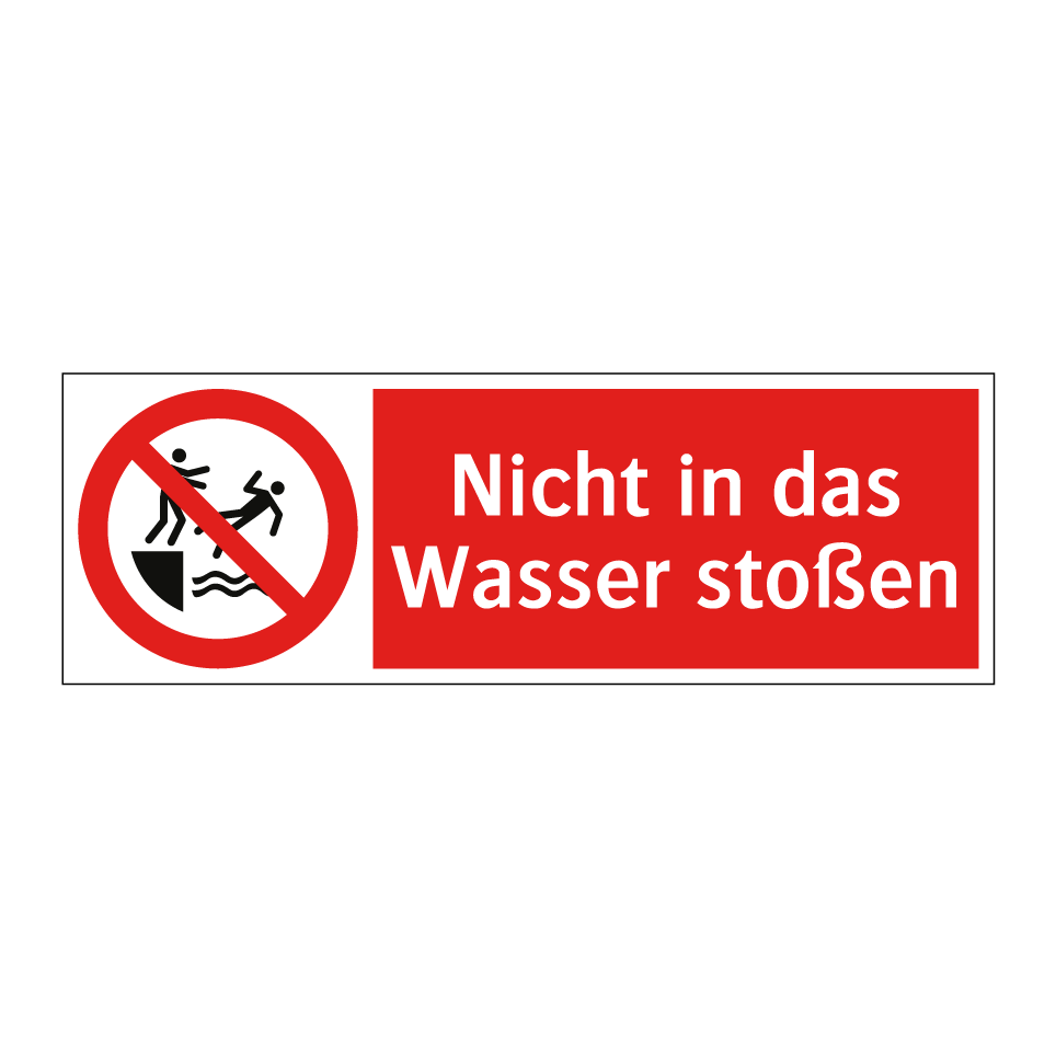Verbotsschild mit dem Text Nicht in das Wasser stoßen