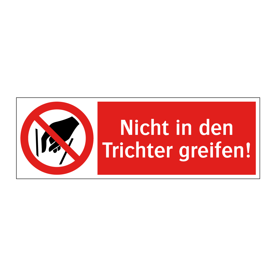 Verbotsschild mit dem Text Nicht in den Trichter greifen!