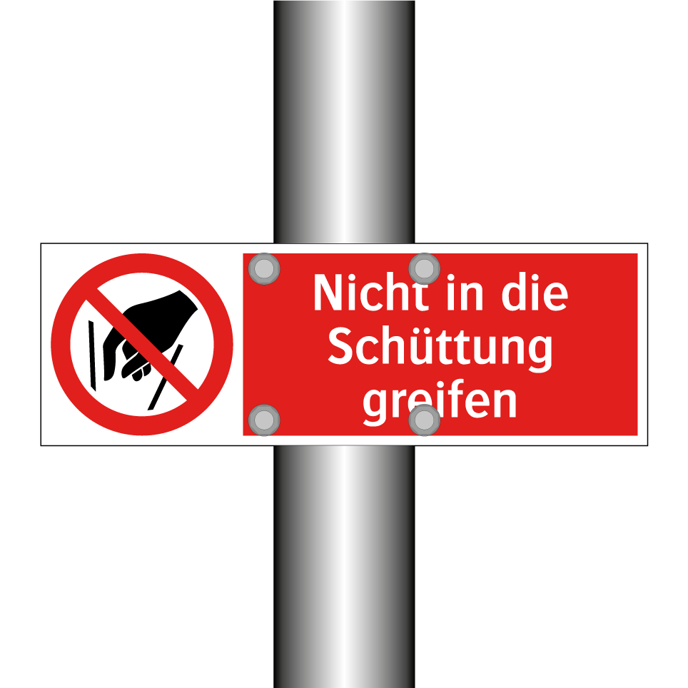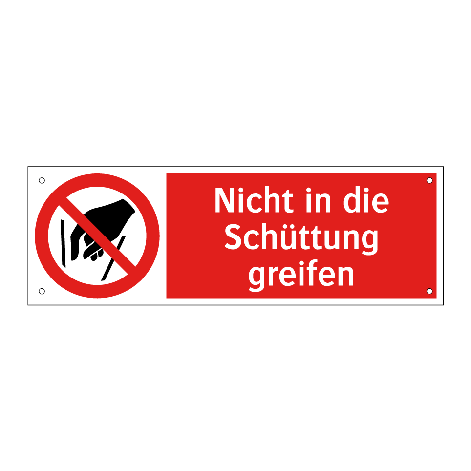 Verbotsschild mit dem Text Nicht in die Schüttung greifen