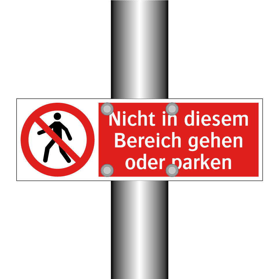Verbotsschild mit dem Text Nicht in diesem Bereich gehen oder parken