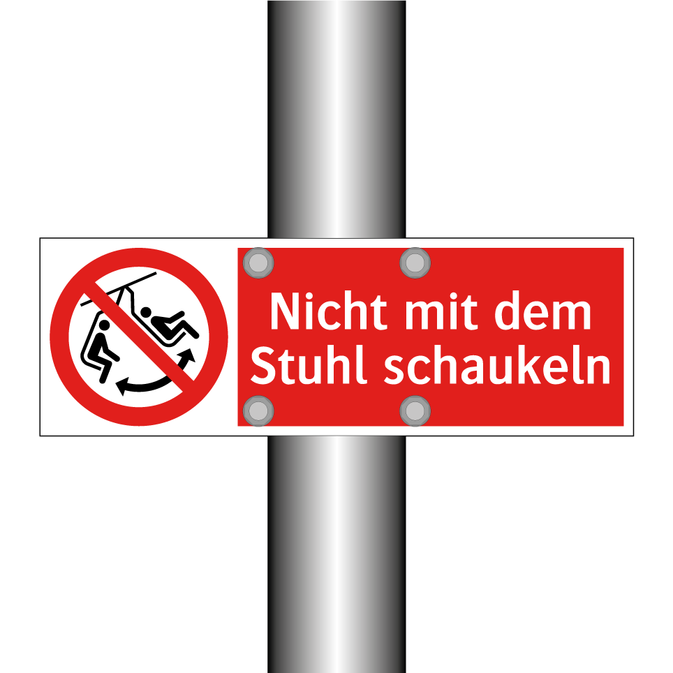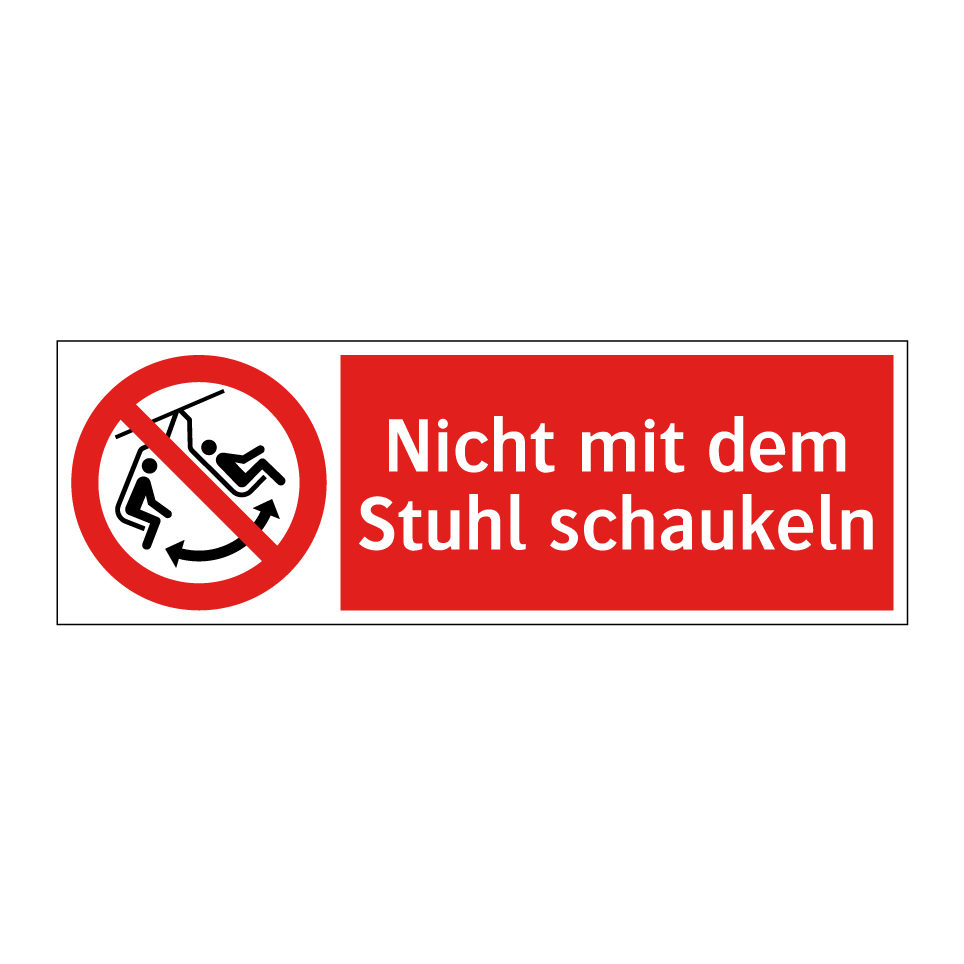 Verbotsschild mit dem Text Nicht mit dem Stuhl schaukeln