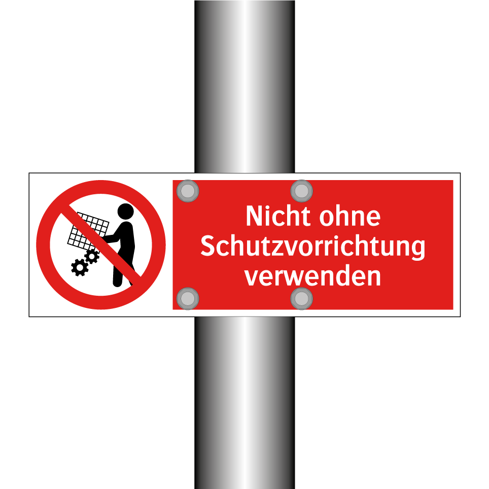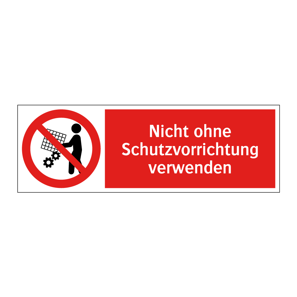 Verbotsschild mit dem Text Nicht ohne Schutzvorrichtung verwenden