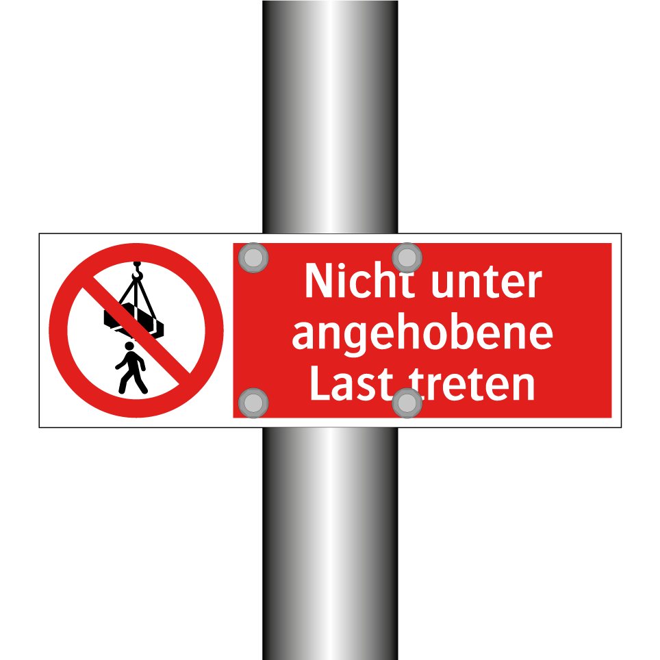 Verbotsschild mit dem Text Nicht unter angehobene Last treten