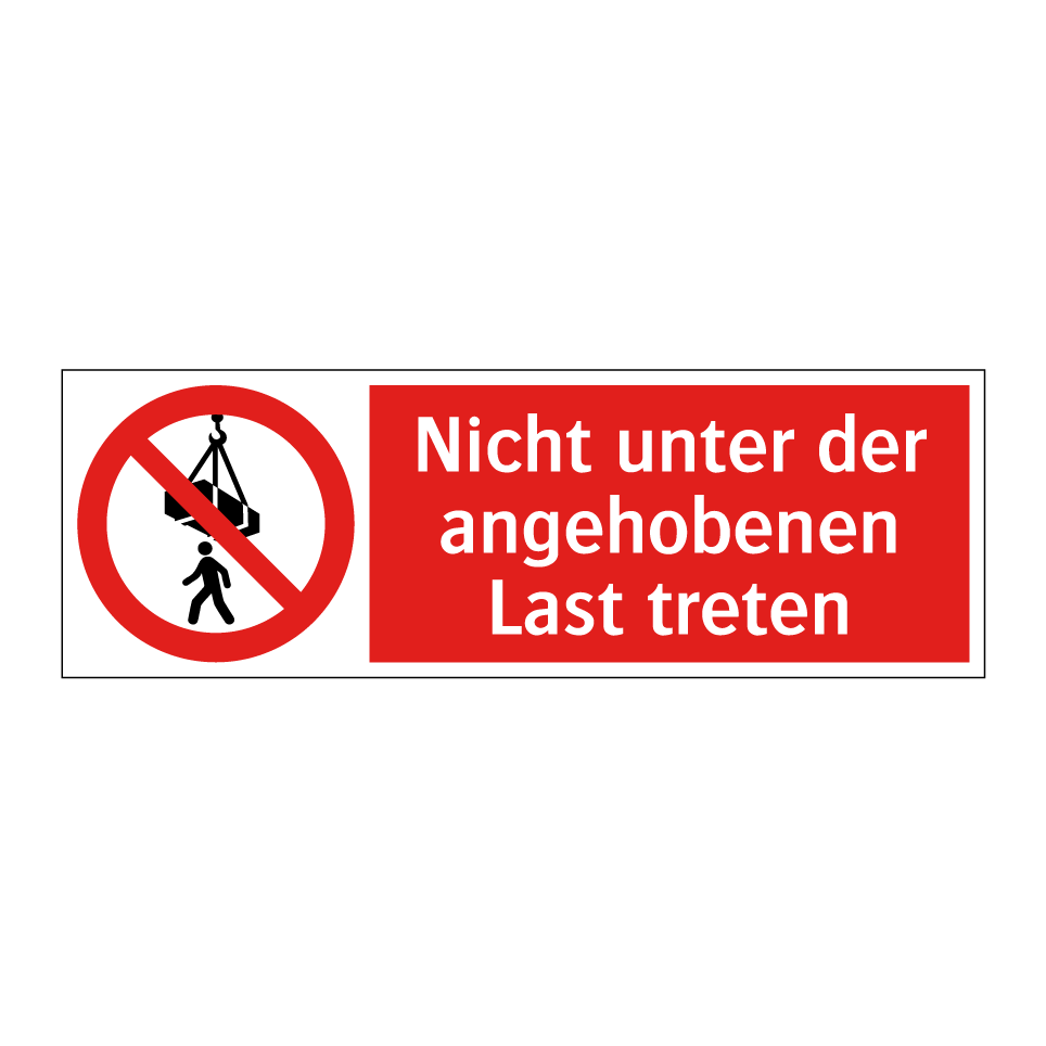 Verbotsschild mit dem Text Nicht unter der angehobenen Last treten