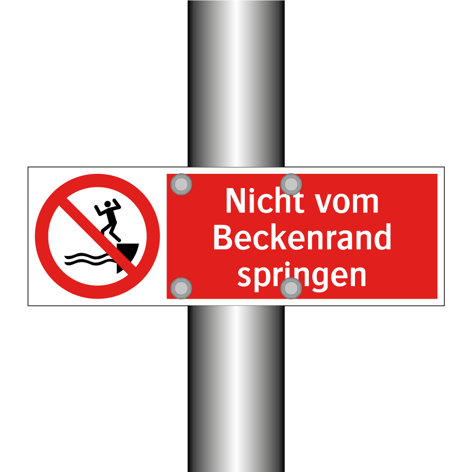 Verbotsschild mit dem Text Nicht vom Beckenrand springen