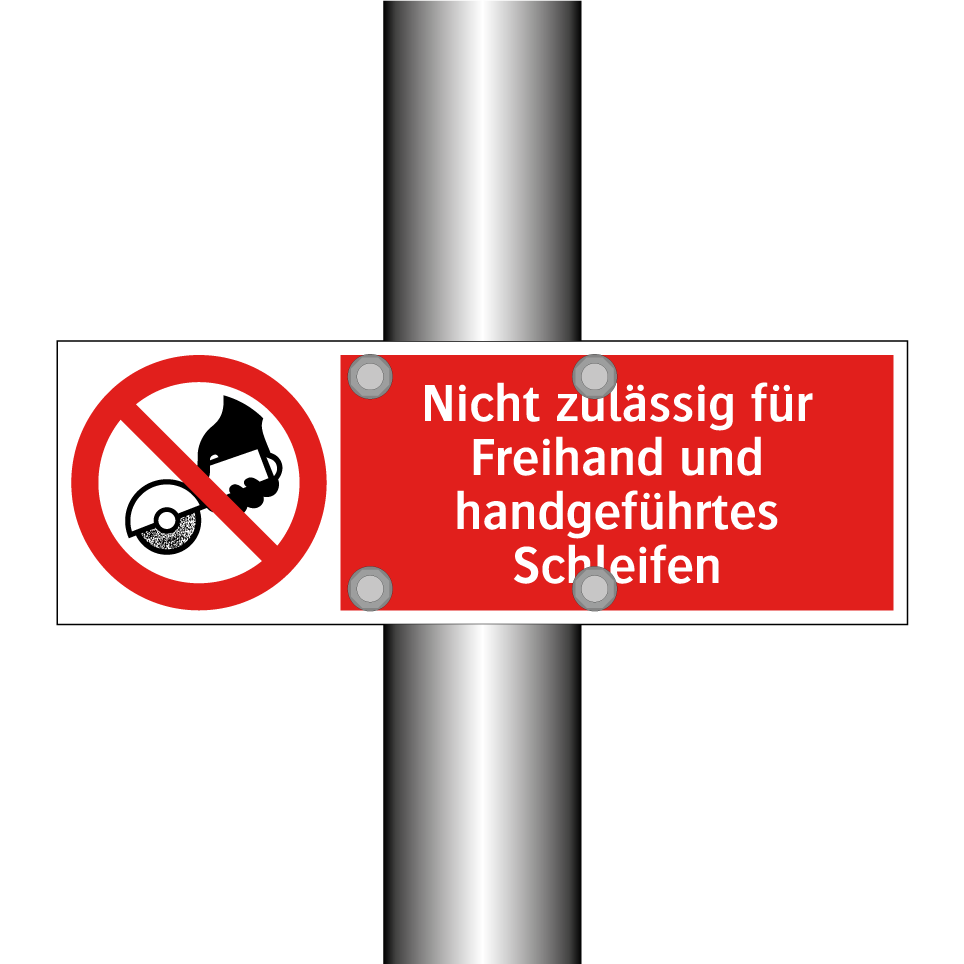 Verbotsschild mit dem Text Nicht zulässig für Freihand und handgeführtes Schleifen