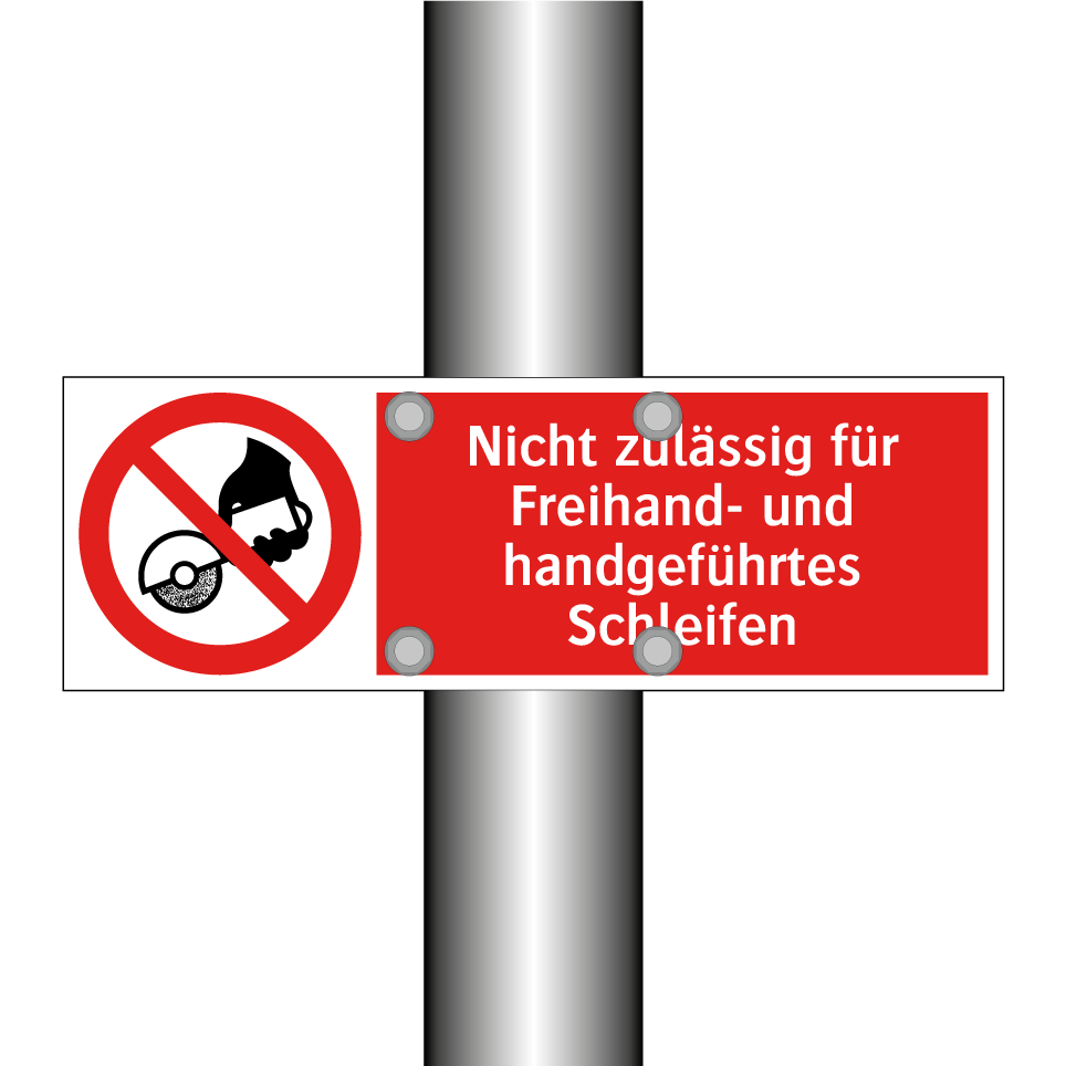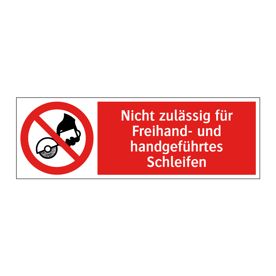 Verbotsschild mit dem Text Nicht zulässig für Freihand- und handgeführtes Schleifen