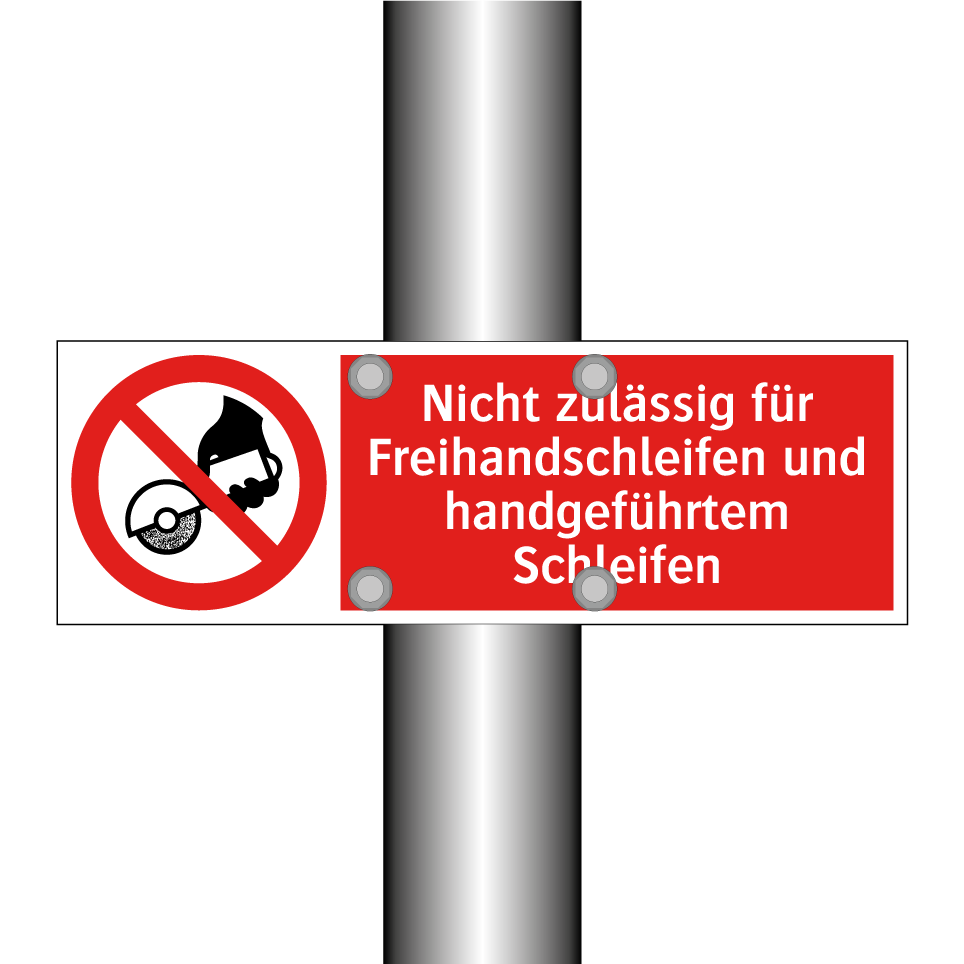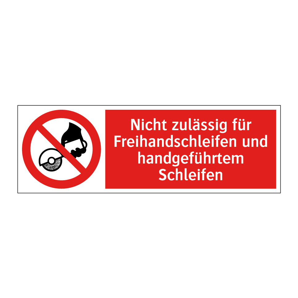 Verbotsschild mit dem Text Nicht zulässig für Freihandschleifen und handgeführtem Schleifen