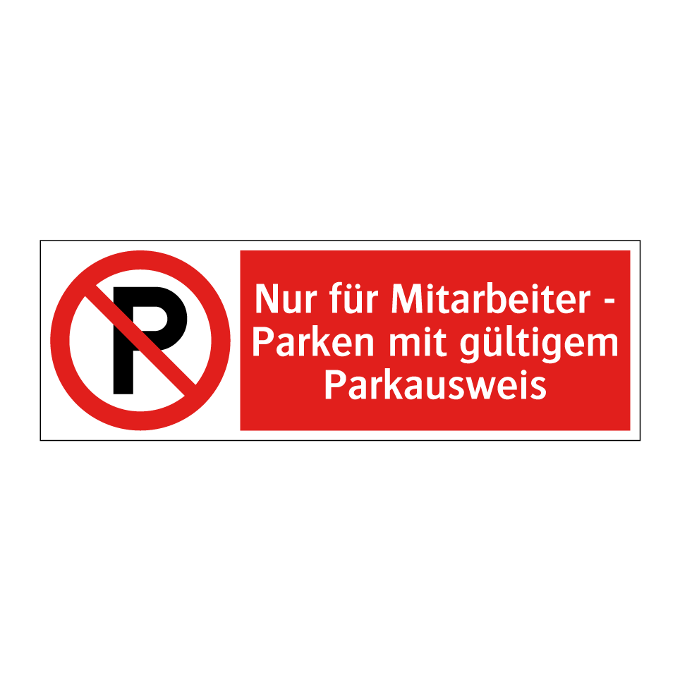 Verbotsschild mit dem Text Nur für Mitarbeiter - Parken mit gültigem Parkausweis