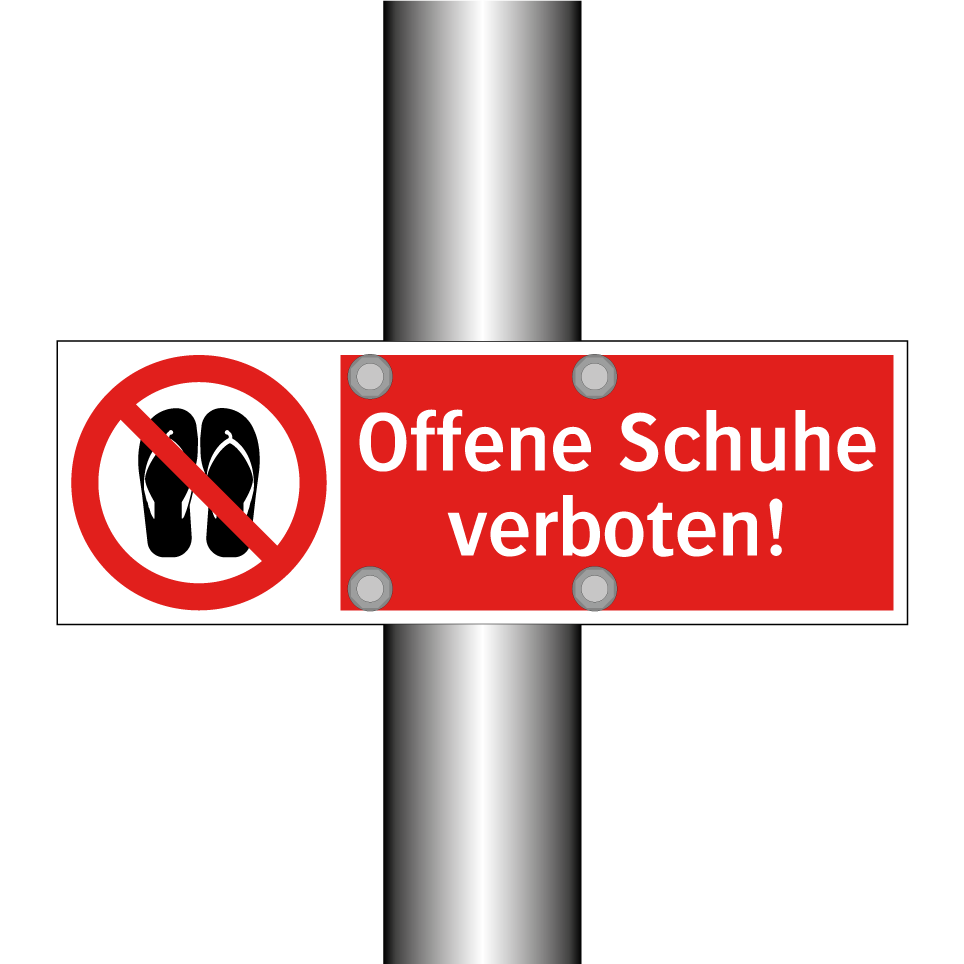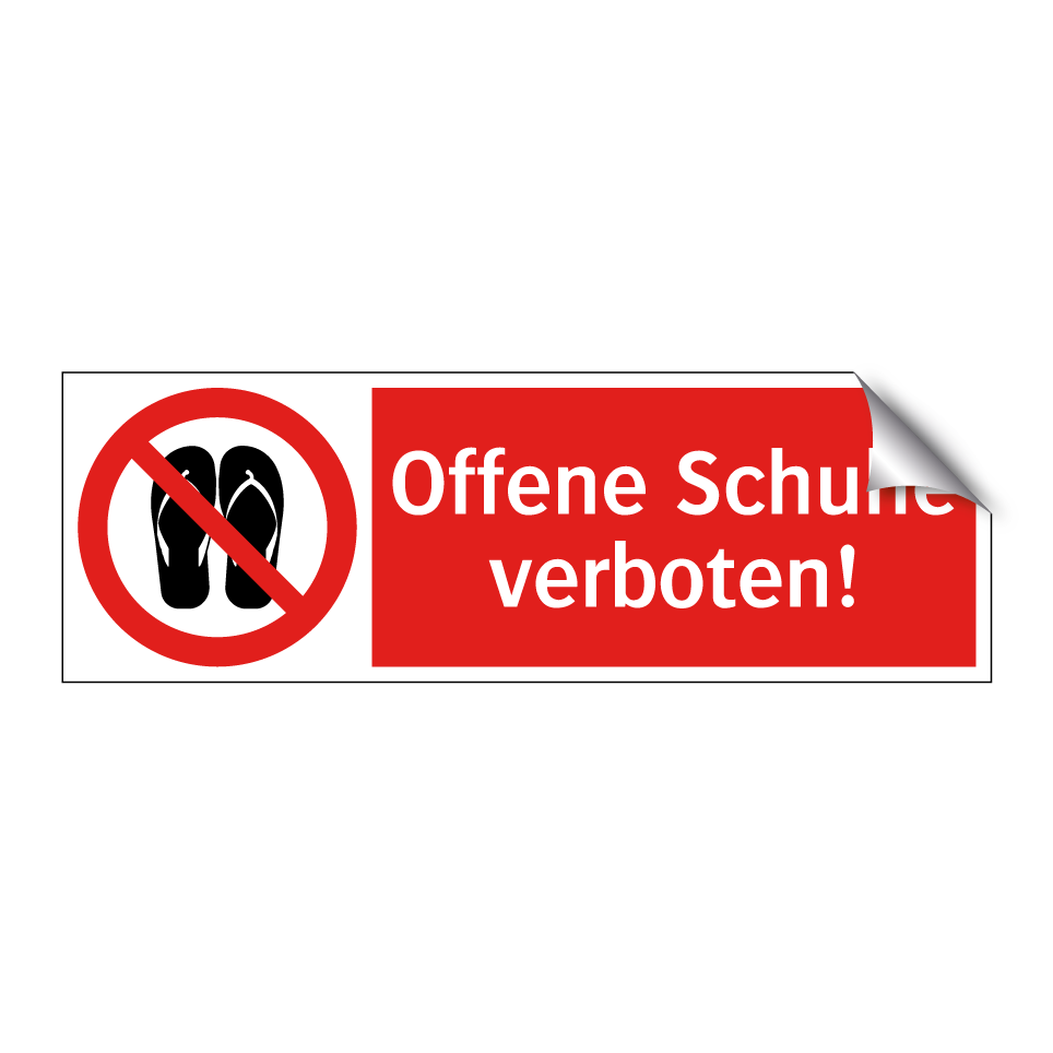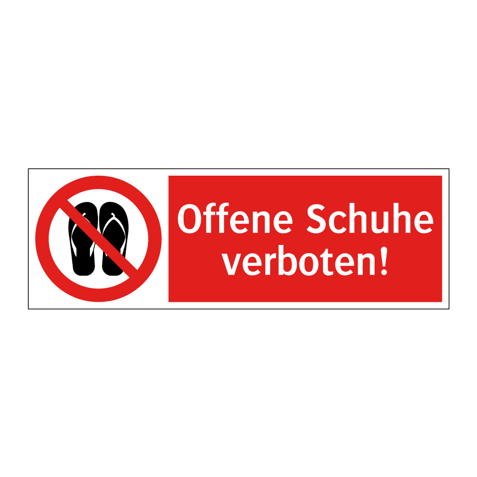 Verbotsschild mit dem Text Offene Schuhe verboten!