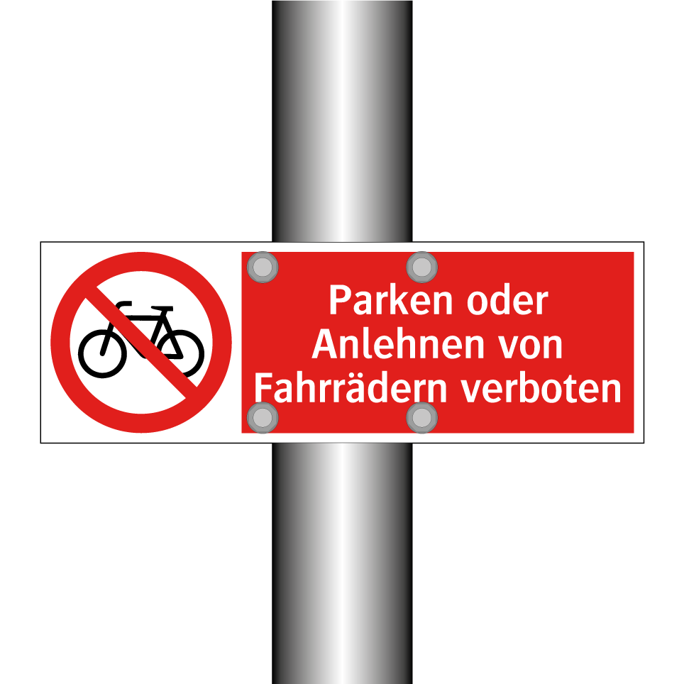 Verbotsschild mit dem Text Parken oder Anlehnen von Fahrrädern verboten