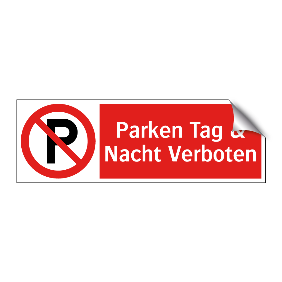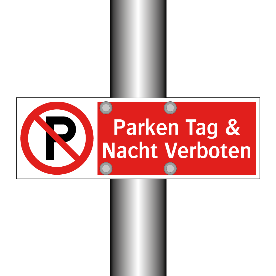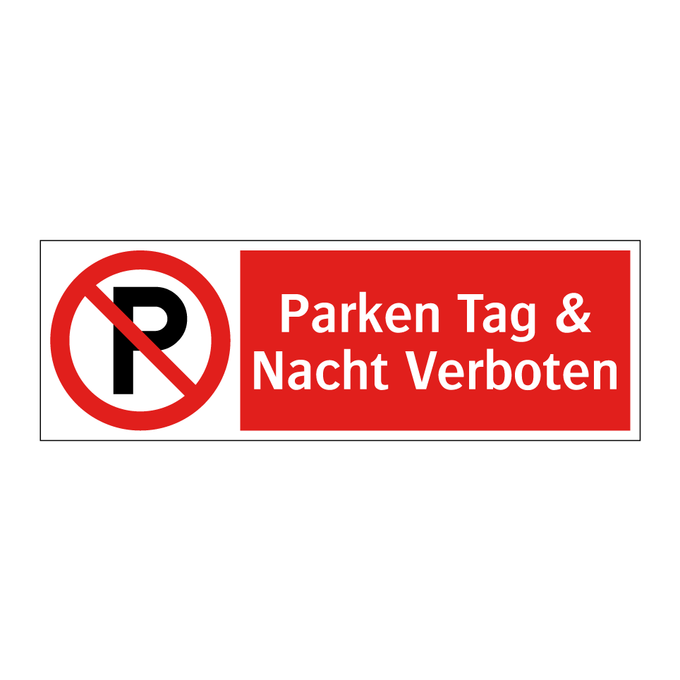 Verbotsschild mit dem Text Parken Tag & Nacht Verboten