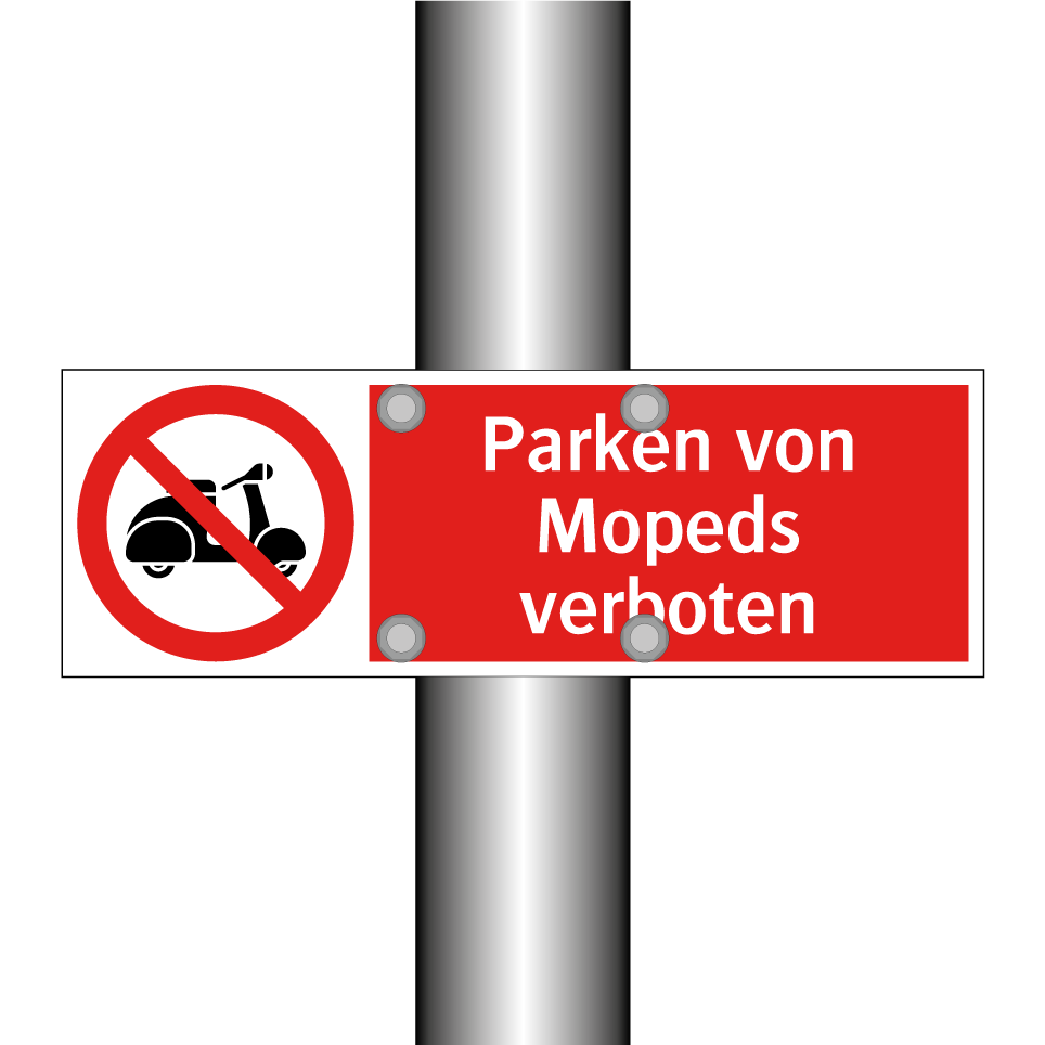 Verbotsschild mit dem Text Parken von Mopeds verboten
