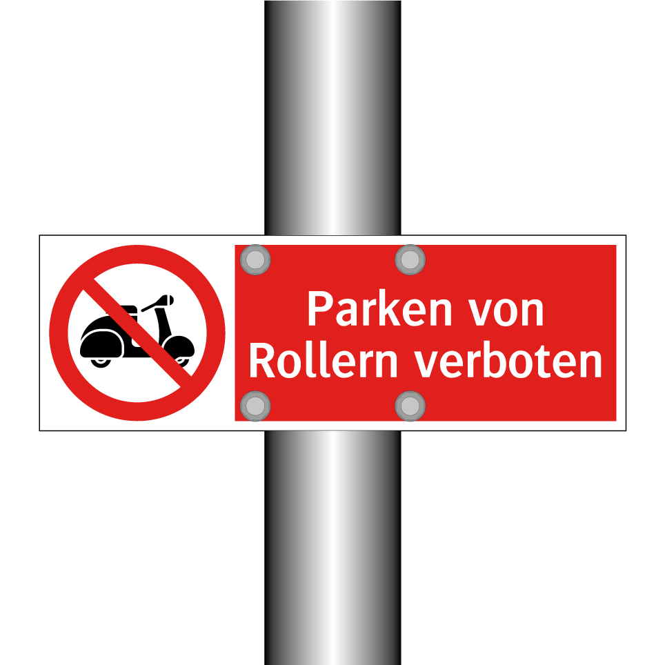 Verbotsschild mit dem Text Parken von Rollern verboten
