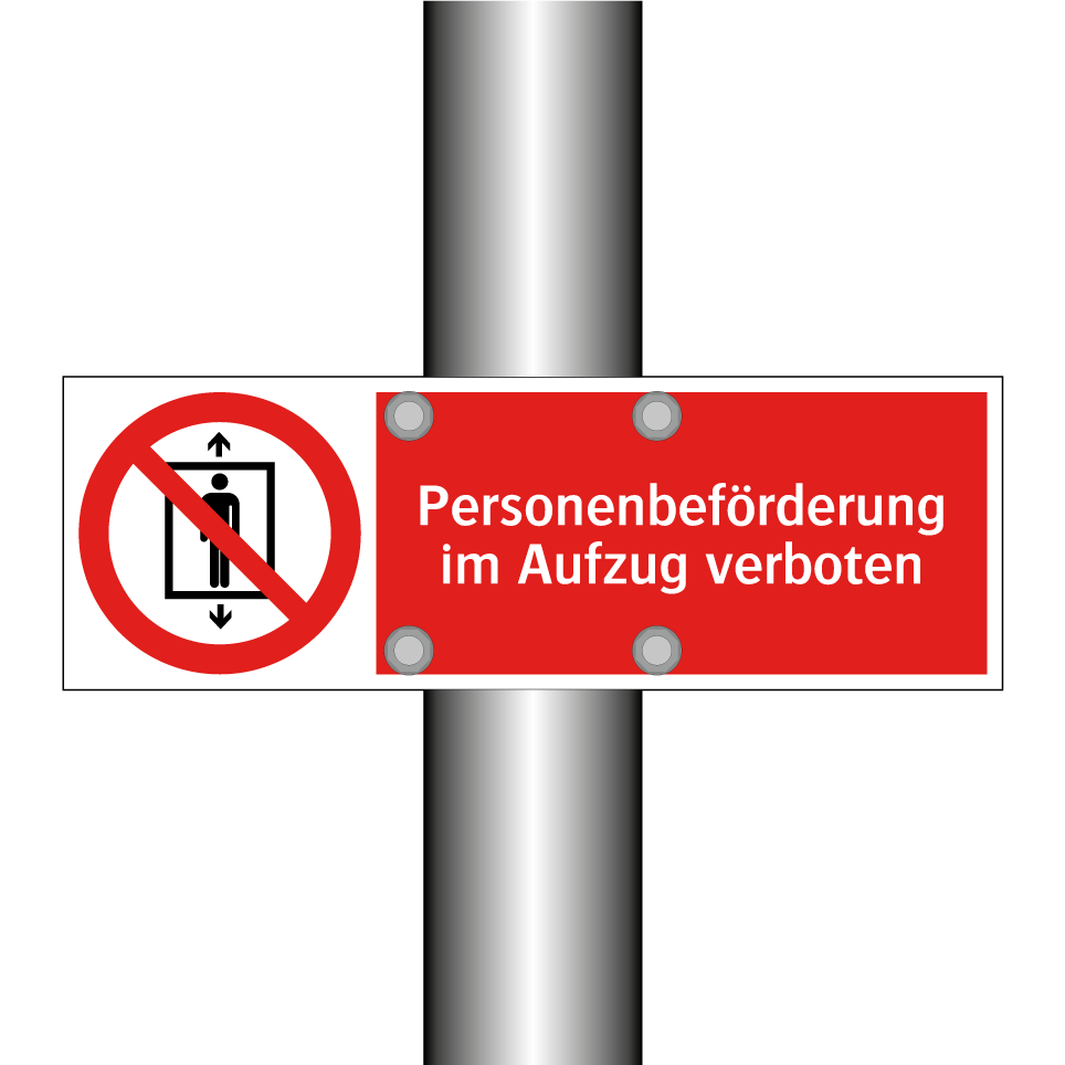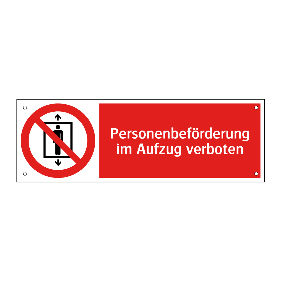 Verbotsschild mit dem Text Personenbeförderung im Aufzug verboten