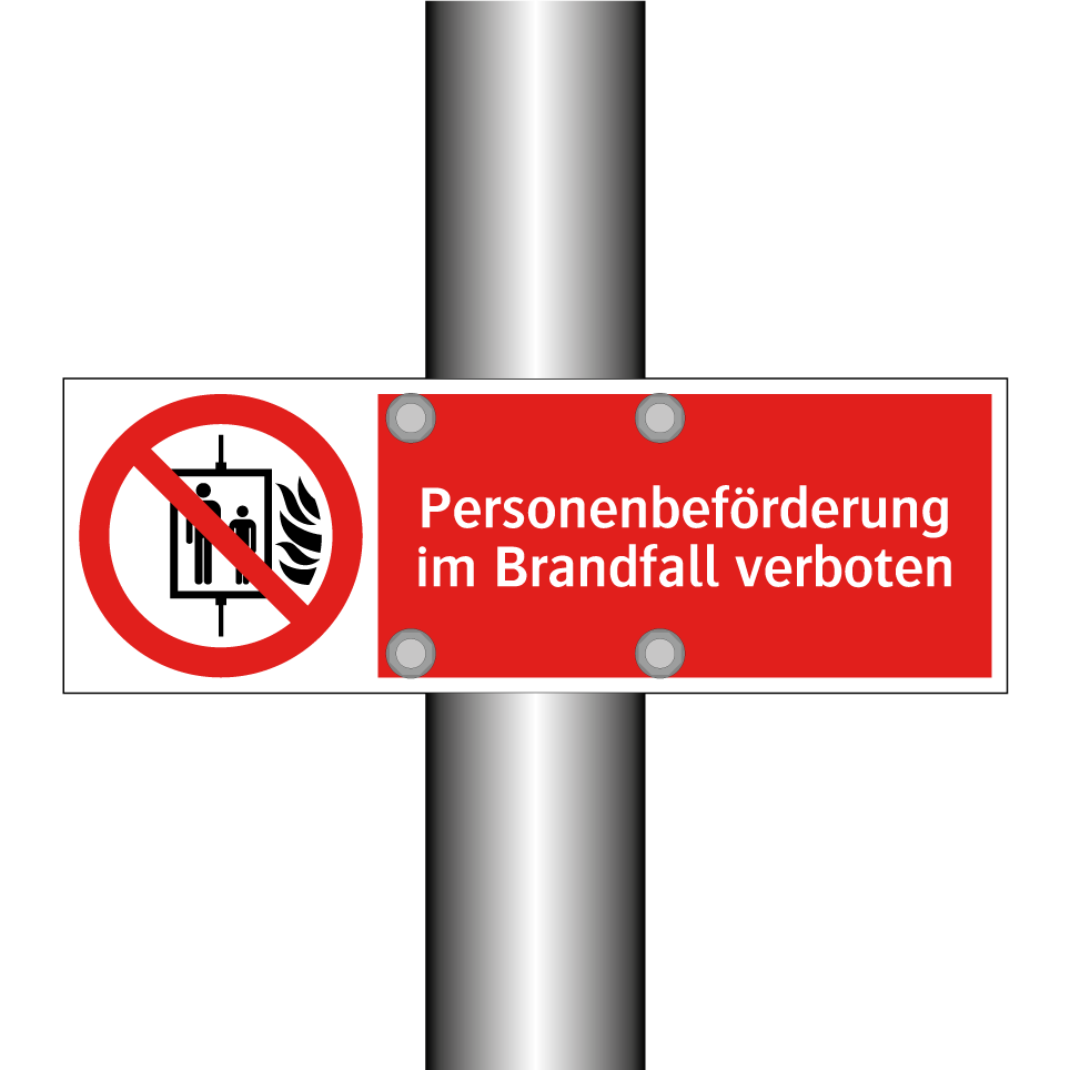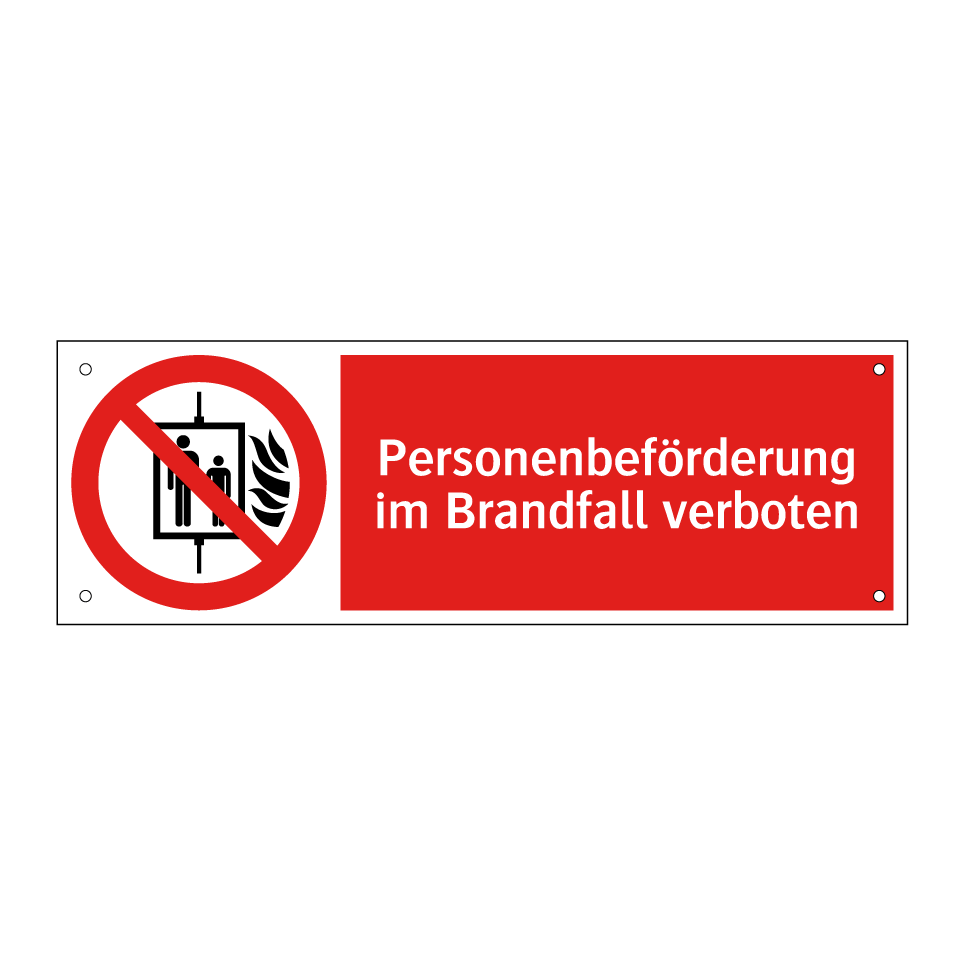 Verbotsschild mit dem Text Personenbeförderung im Brandfall verboten