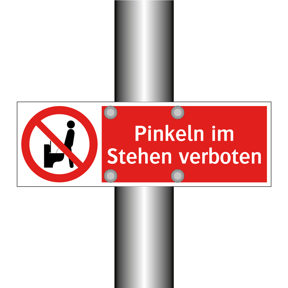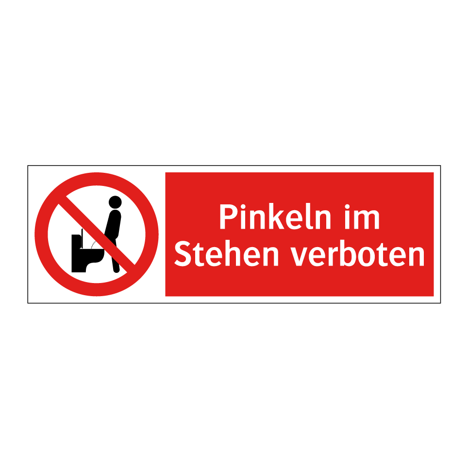Verbotsschild mit dem Text Pinkeln im Stehen verboten
