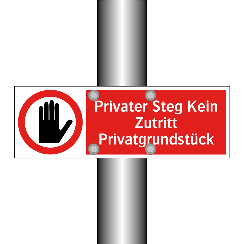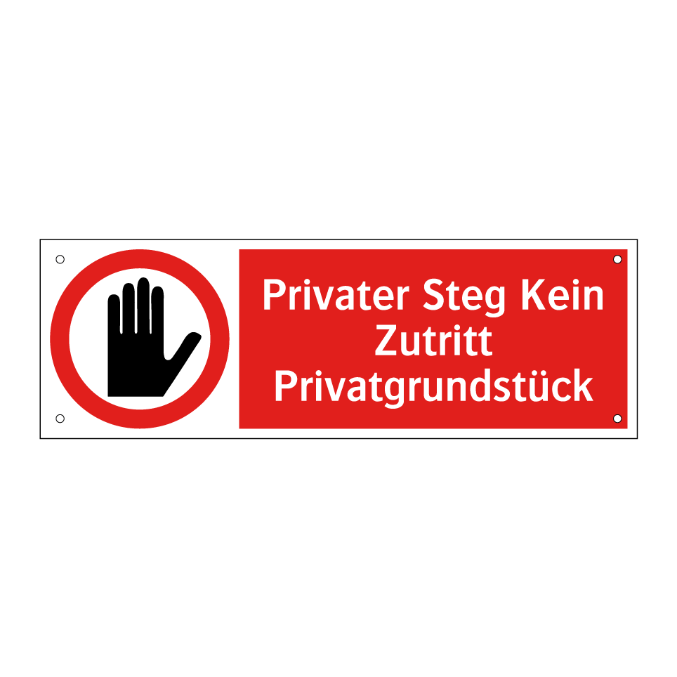 Diese auffällige Verbotsschild mit rotem Hintergrund und weißer Schrift ist ideal, um unbefugten Zutritt zu verhindern. Sie eignet sich hervorragend für den Einsatz an privaten Stegen oder Grundstücken, um deutlich zu machen, dass der Zugang untersagt ist. Die klare Symbolik und der prägnante Text sorgen dafür, dass die Botschaft unmissverständlich ist. Platzieren Sie dieses Schild an Eingängen, Zäunen oder anderen strategischen Punkten, um die Privatsphäre und Sicherheit Ihres Eigentums zu gewährleisten. Diese Verbotsschilder sind ein effektives Mittel, um unerwünschte Besucher fernzuhalten und Ihr Gelände zu schützen.
