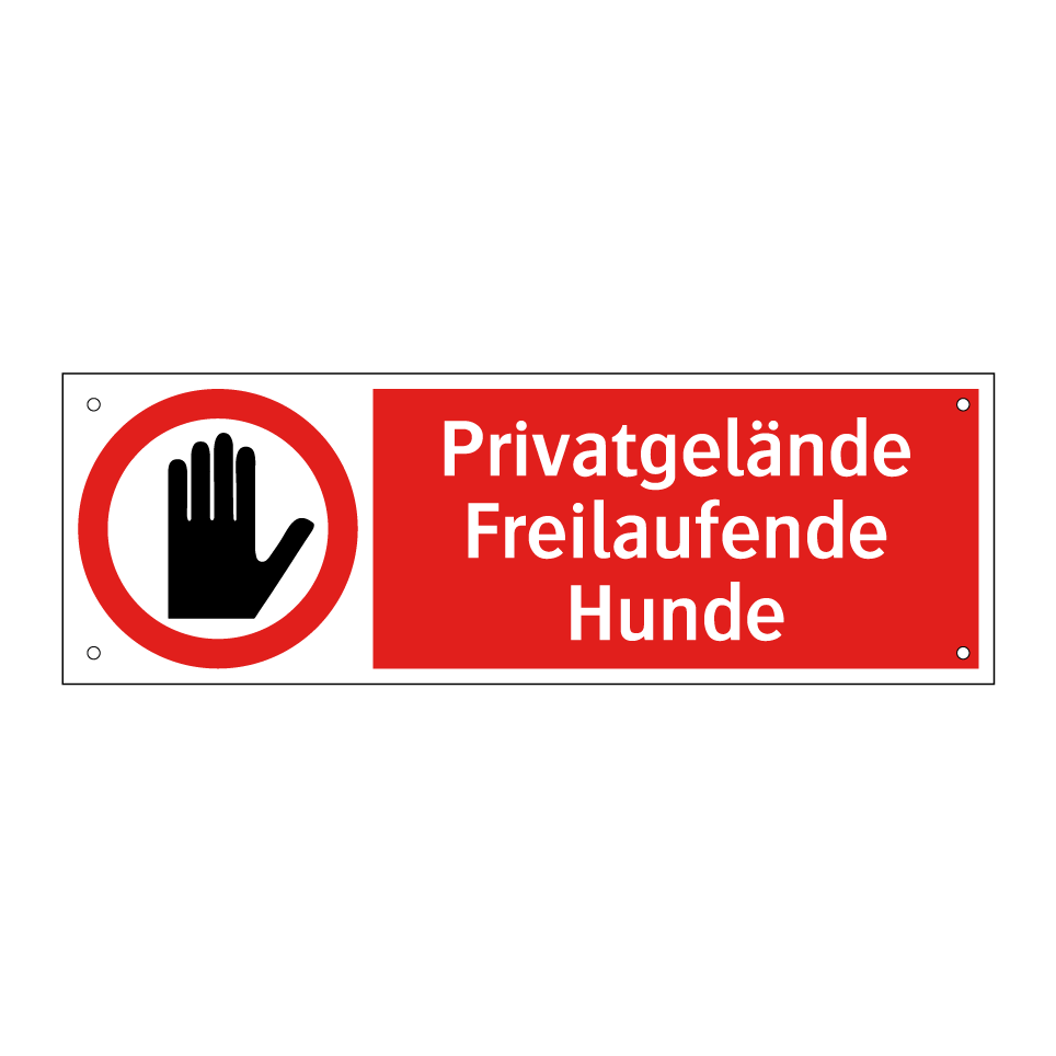 Verbotsschild mit dem Text Privatgelände Freilaufende Hunde