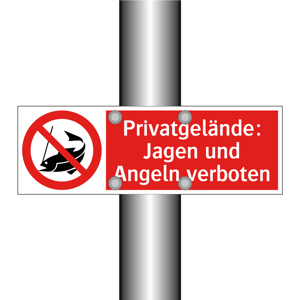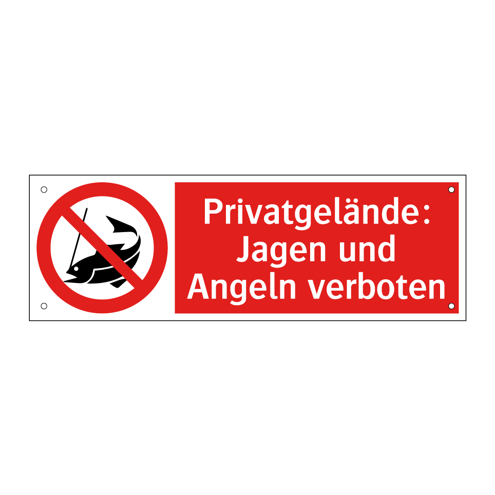 Verbotsschild mit dem Text Privatgelände: Jagen und Angeln verboten