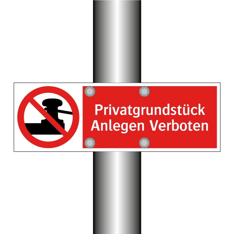 Verbotsschild mit dem Text Privatgrundstück Anlegen Verboten