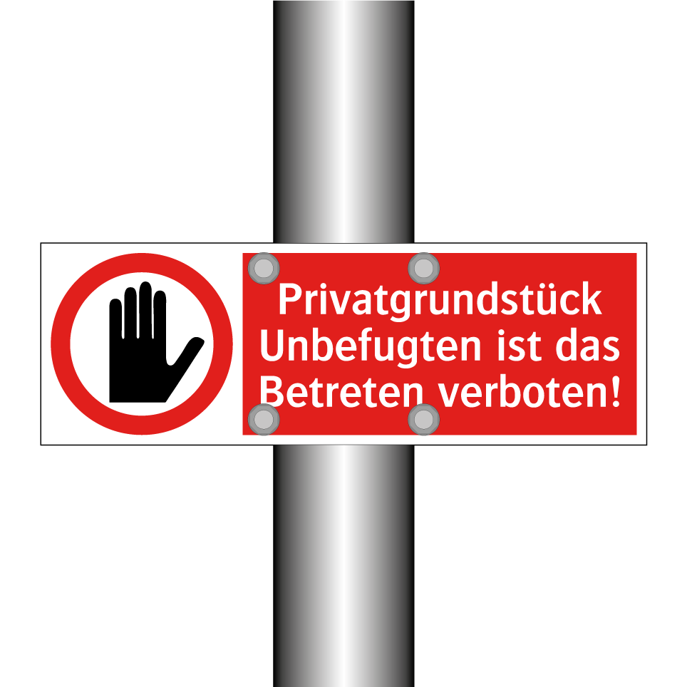 Verbotsschild mit dem Text Privatgrundstück Unbefugten ist das Betreten verboten!