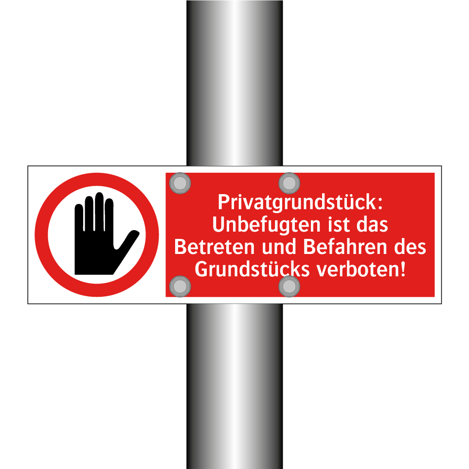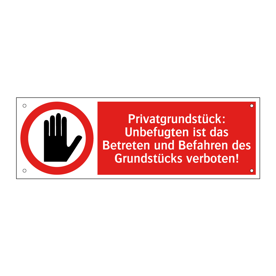 Verbotsschild mit dem Text Privatgrundstück: Unbefugten ist das Betreten und Befahren des Grundstücks verboten!