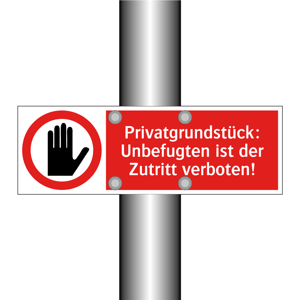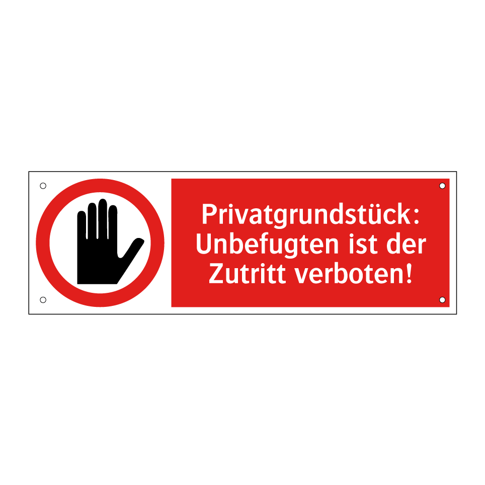 Verbotsschild mit dem Text Privatgrundstück: Unbefugten ist der Zutritt verboten!