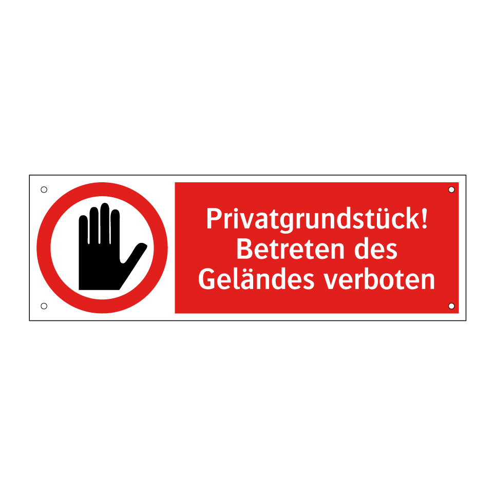 Verbotsschild mit dem Text Privatgrundstück! Betreten des Geländes verboten