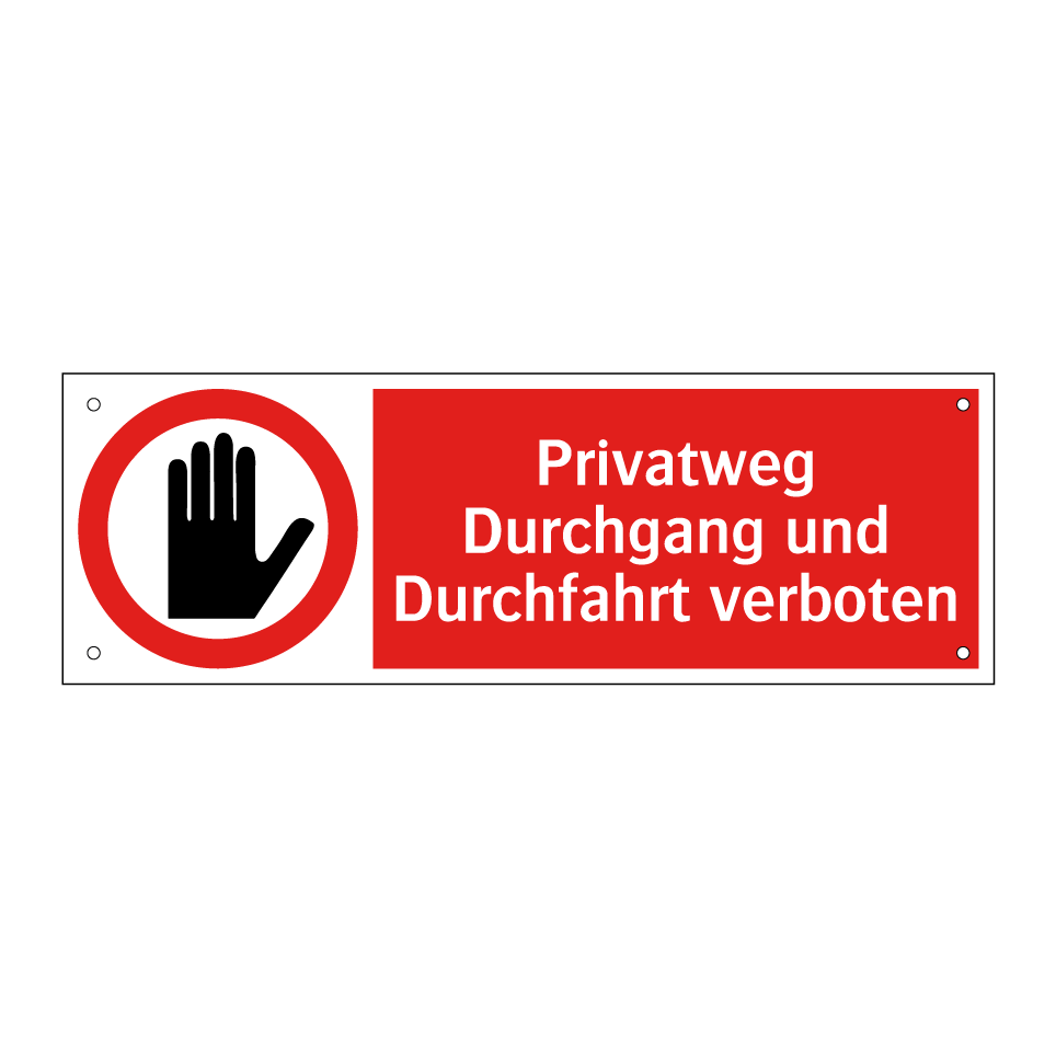 Verbotsschild mit dem Text Privatweg Durchgang und Durchfahrt verboten