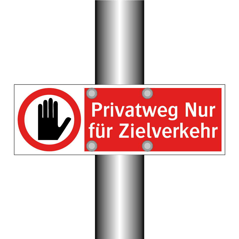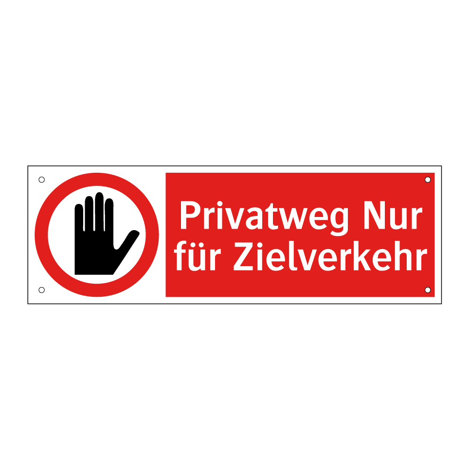 Verbotsschild mit dem Text Privatweg Nur für Zielverkehr