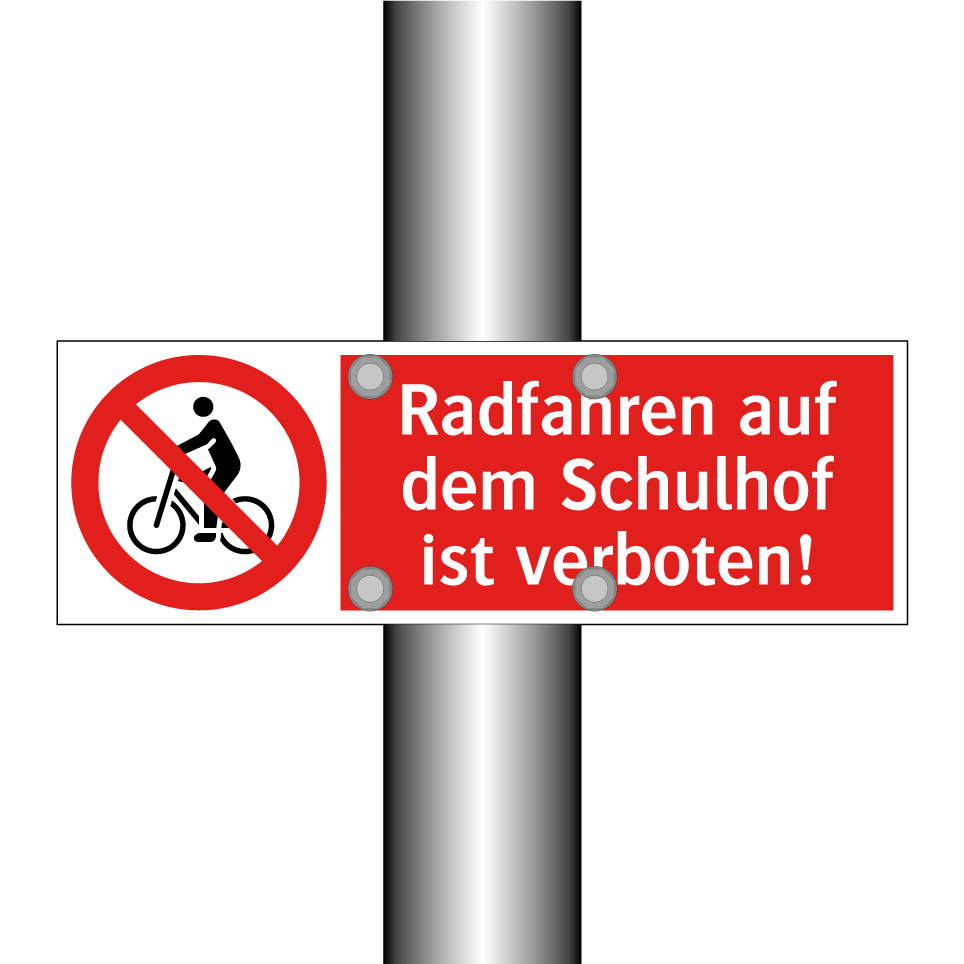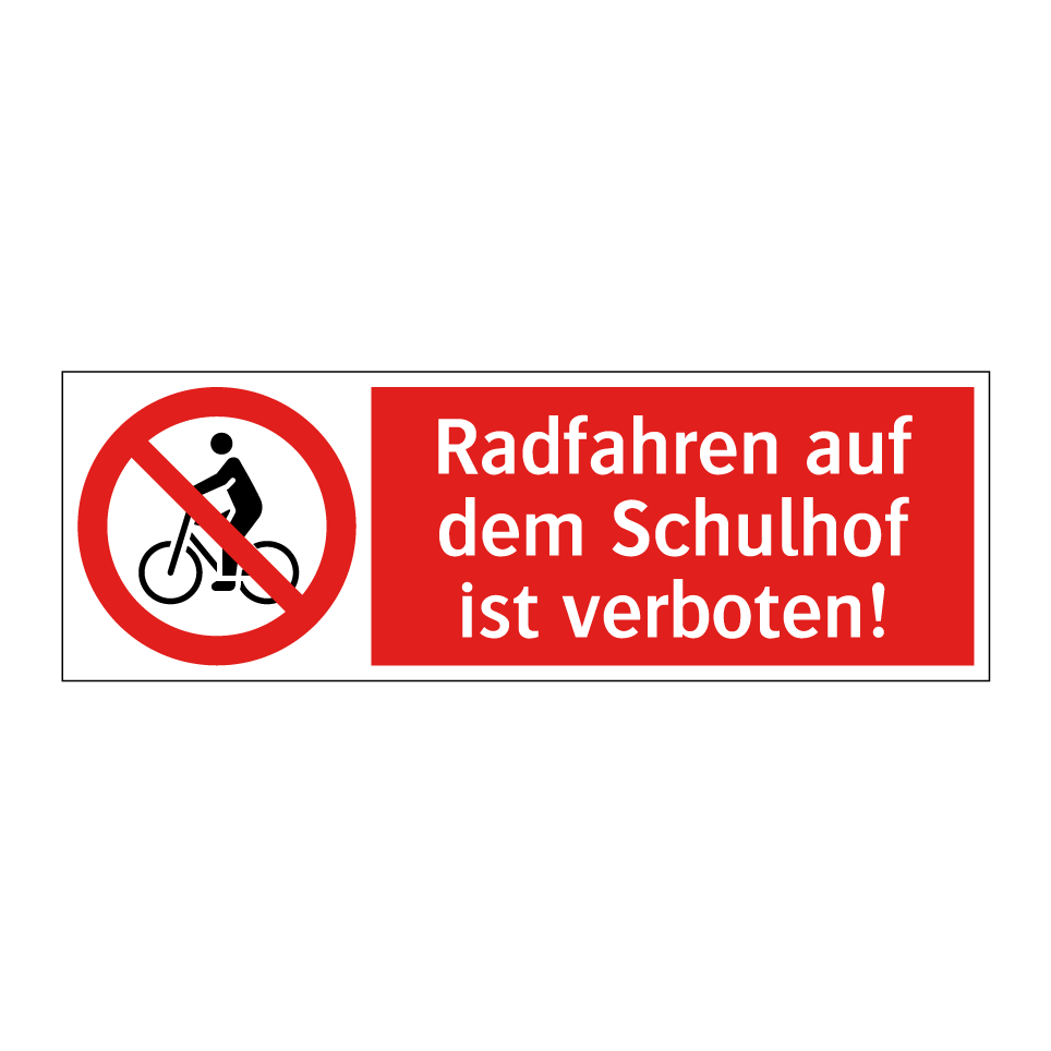 Verbotsschild mit dem Text Radfahren auf dem Schulhof ist verboten!