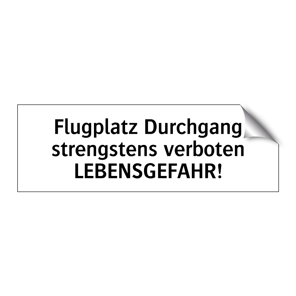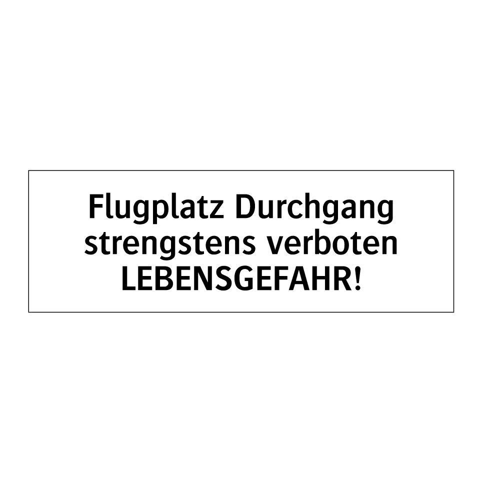 Verbotsschild mit dem Text Flugplatz Durchgang strengstens verboten LEBENSGEFAHR!