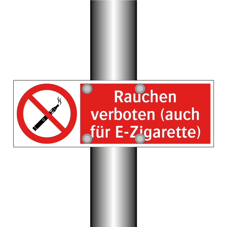 Verbotsschild mit dem Text Rauchen verboten (auch für E-Zigarette)