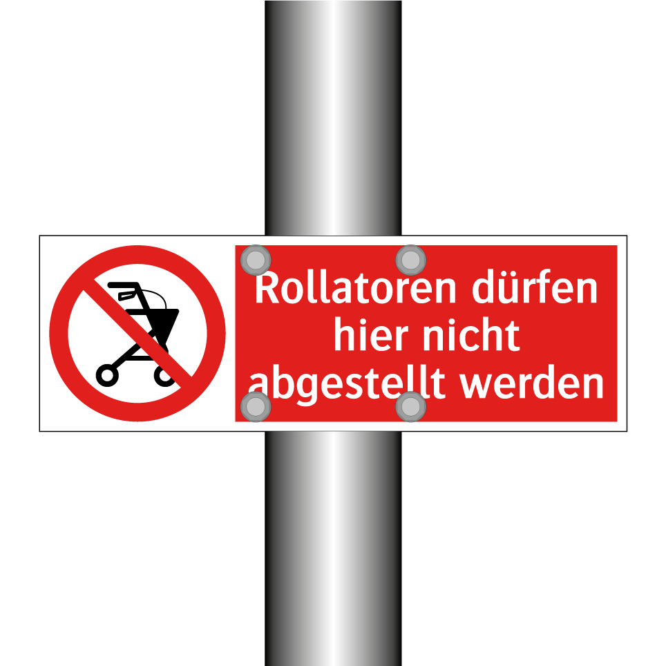 Verbotsschild mit dem Text Rollatoren dürfen hier nicht abgestellt werden