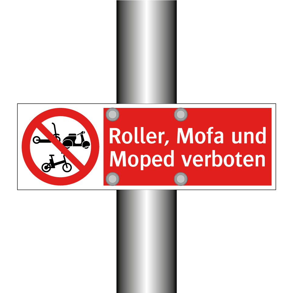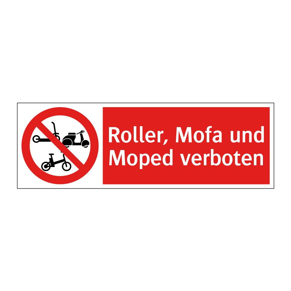 Verbotsschild mit dem Text Roller, Mofa und Moped verboten