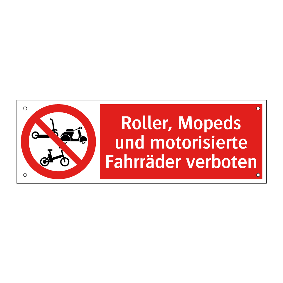 Verbotsschild mit dem Text Roller, Mopeds und motorisierte Fahrräder verboten