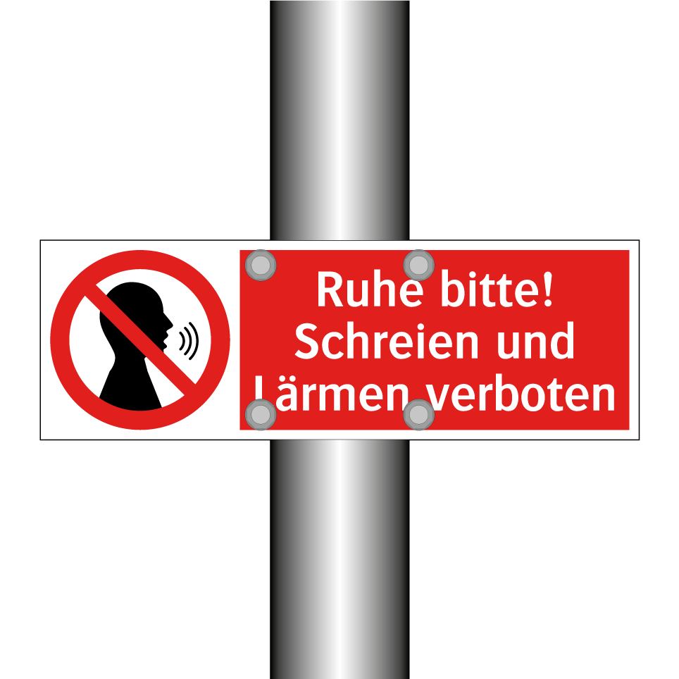 Verbotsschild mit dem Text Ruhe bitte! Schreien und Lärmen verboten