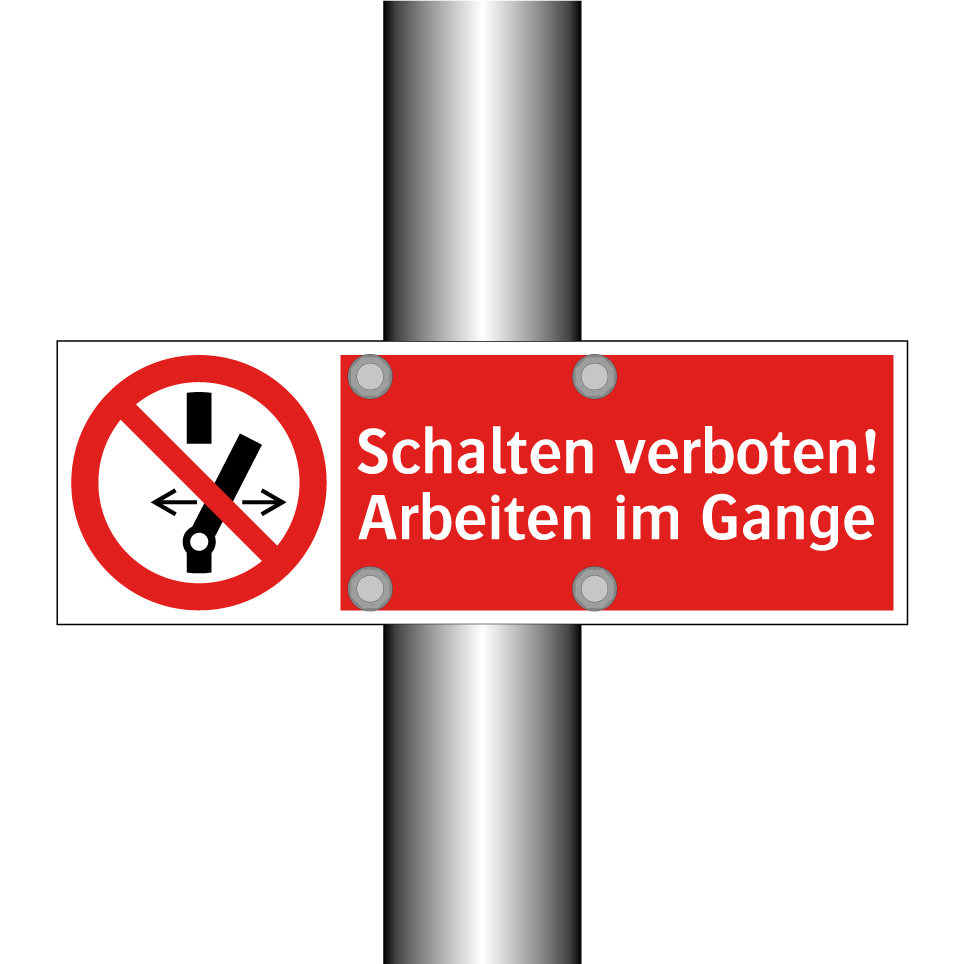 Verbotsschild mit dem Text Schalten verboten! Arbeiten im Gange