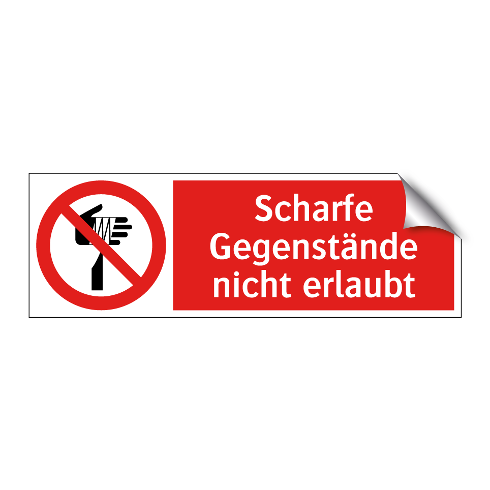 Verbotsschild mit dem Text Scharfe Gegenstände nicht erlaubt
