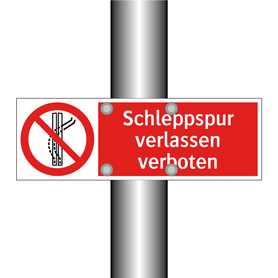 Verbotsschild mit dem Text Schleppspur verlassen verboten