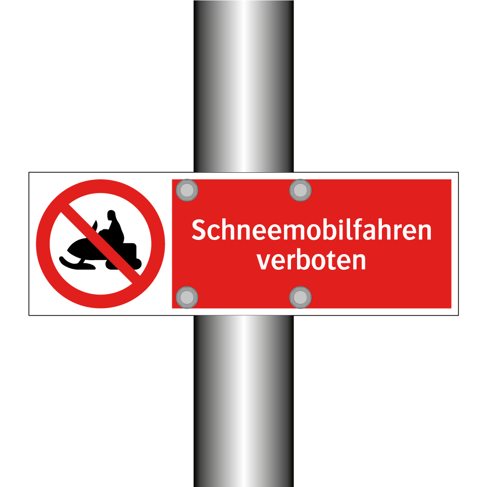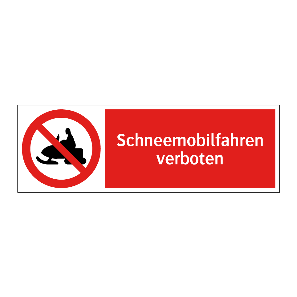 Verbotsschild mit dem Text Schneemobilfahren verboten