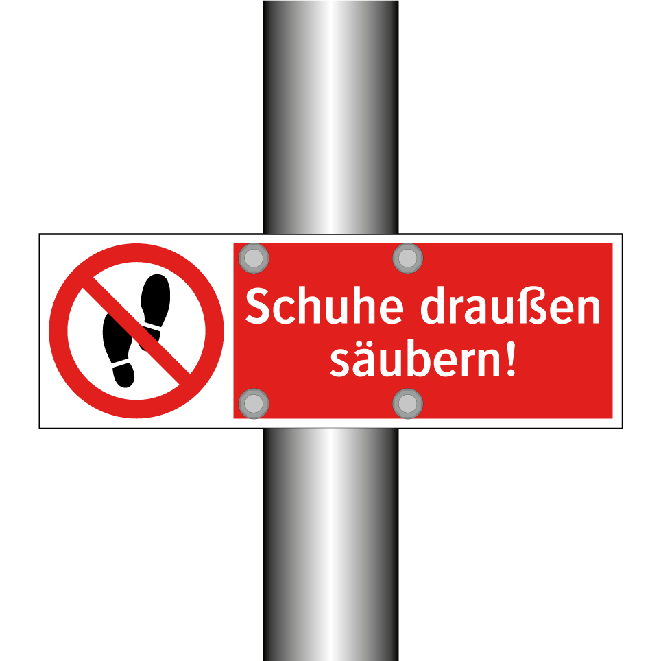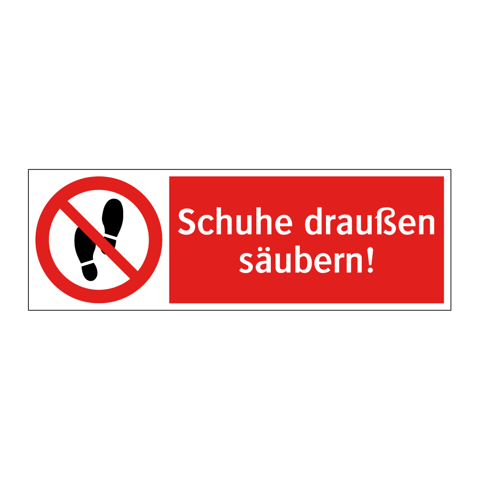 Verbotsschild mit dem Text Schuhe draußen säubern!