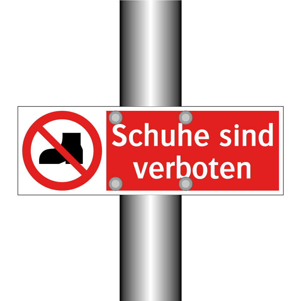 Diese auffällige Verbotsschild mit rotem Hintergrund und weißer Schrift ist ideal, um klare Anweisungen zu geben. Sie eignet sich perfekt für den Einsatz in Bereichen, in denen das Tragen von Schuhen unerwünscht ist, wie zum Beispiel in Schwimmbädern, Fitnessstudios oder bestimmten Produktionsbereichen. Die deutliche Symbolik sorgt dafür, dass die Botschaft unmissverständlich ist und von jedem sofort verstanden wird. Platzieren Sie diese Verbotsschild an Eingängen oder in Bereichen, in denen die Einhaltung dieser Regel besonders wichtig ist. Durch ihre klare Gestaltung trägt sie effektiv zur Einhaltung von Vorschriften bei und fördert ein sicheres und sauberes Umfeld.