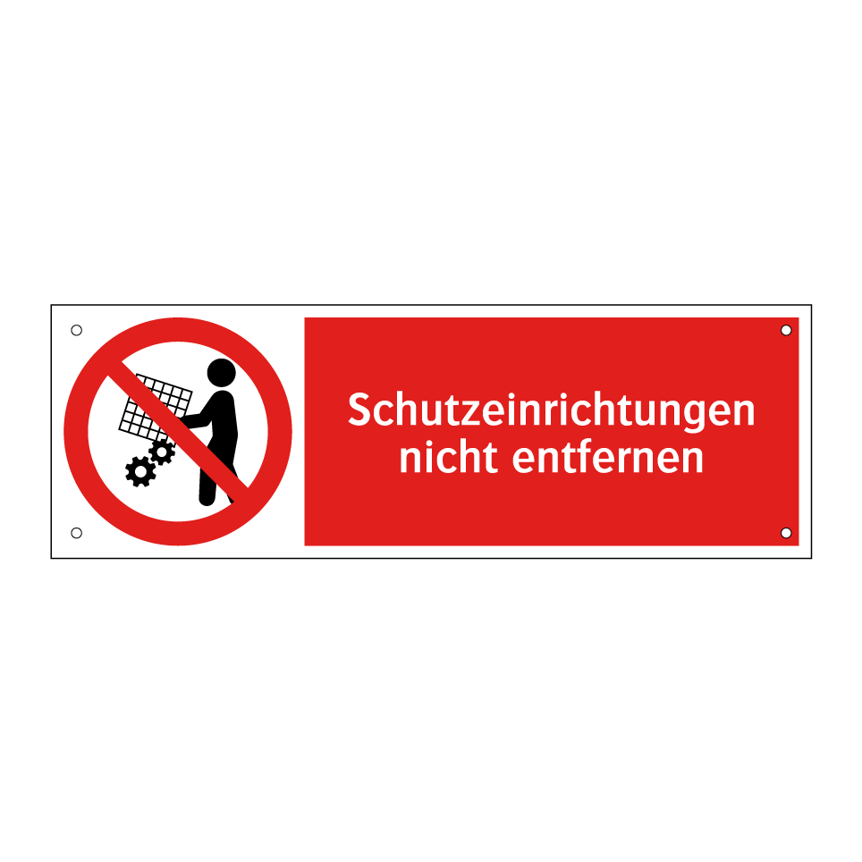 Verbotsschild mit dem Text Schutzeinrichtungen nicht entfernen