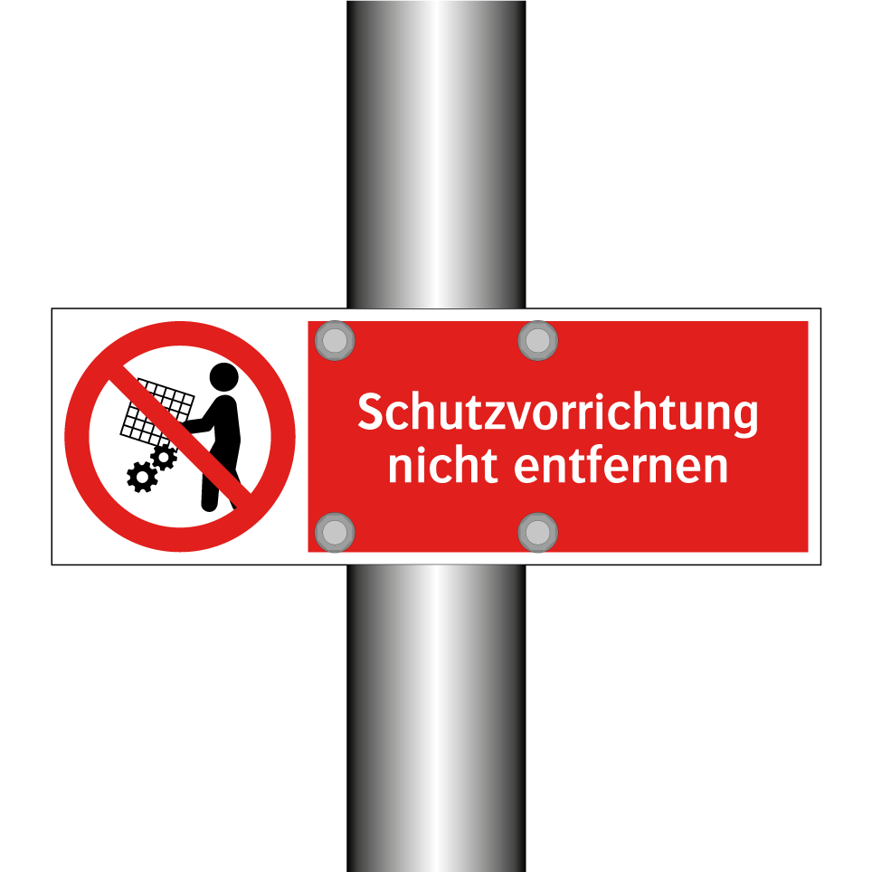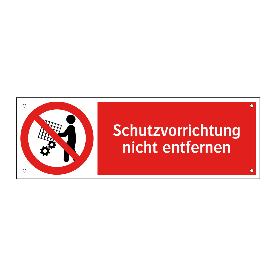 Verbotsschild mit dem Text Schutzvorrichtung nicht entfernen