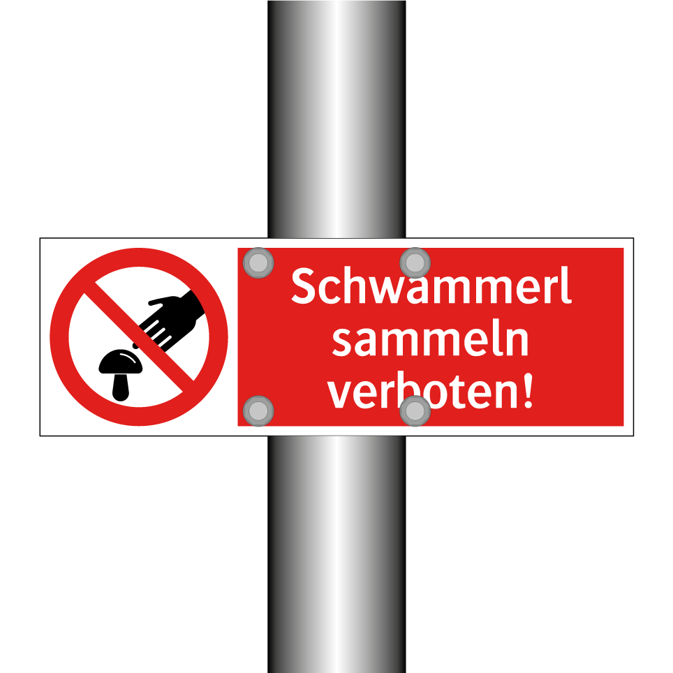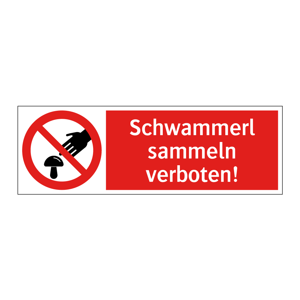 Verbotsschild mit dem Text Schwammerl sammeln verboten!