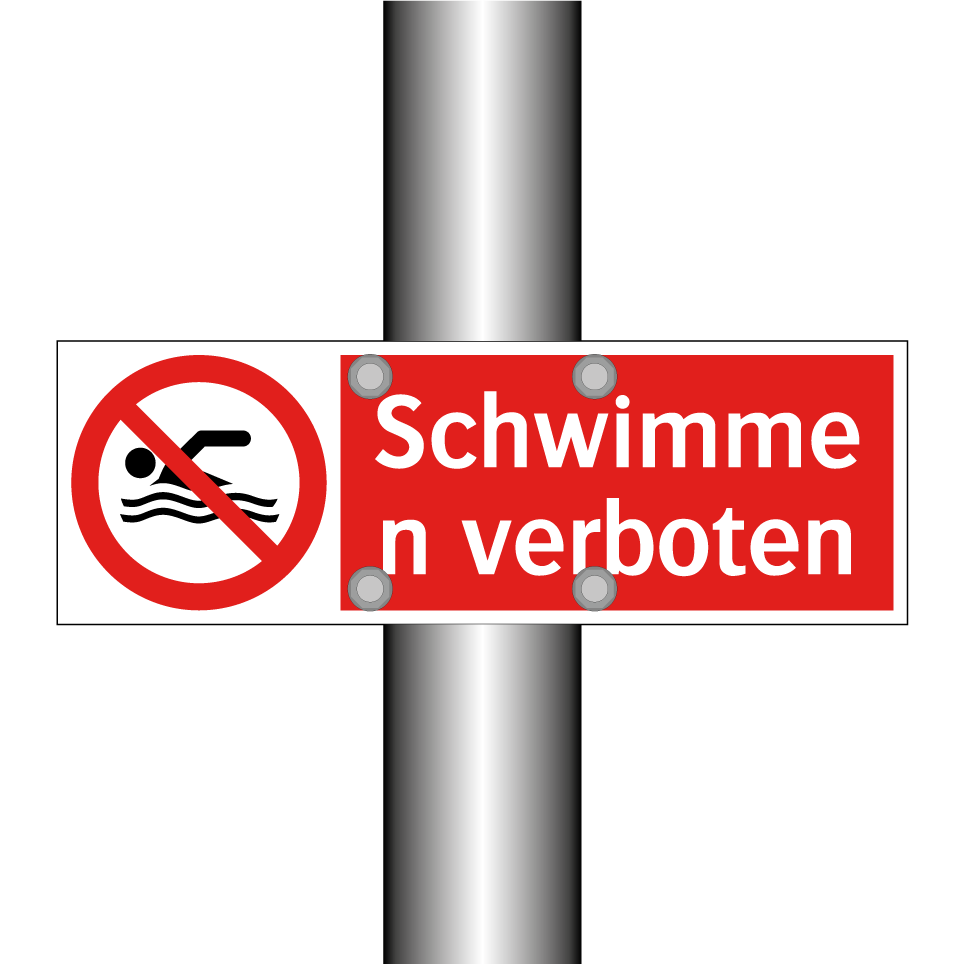 Diese auffällige Verbotsschild mit rotem Hintergrund und weißer Schrift ist ideal, um Schwimmverbote klar und deutlich zu kommunizieren. Perfekt geeignet für den Einsatz an Seen, Flüssen, Schwimmbädern oder anderen Gewässern, wo das Schwimmen aus Sicherheitsgründen untersagt ist. Die klare Symbolik sorgt dafür, dass die Botschaft auch von weitem gut erkennbar ist. Platzieren Sie das Schild an gut sichtbaren Stellen, um Besucher effektiv auf das bestehende Badeverbot hinzuweisen. Diese Verbotsschilder sind ein unverzichtbares Element für die Gewährleistung der Sicherheit in öffentlichen und privaten Bereichen, wo das Schwimmen nicht gestattet ist.