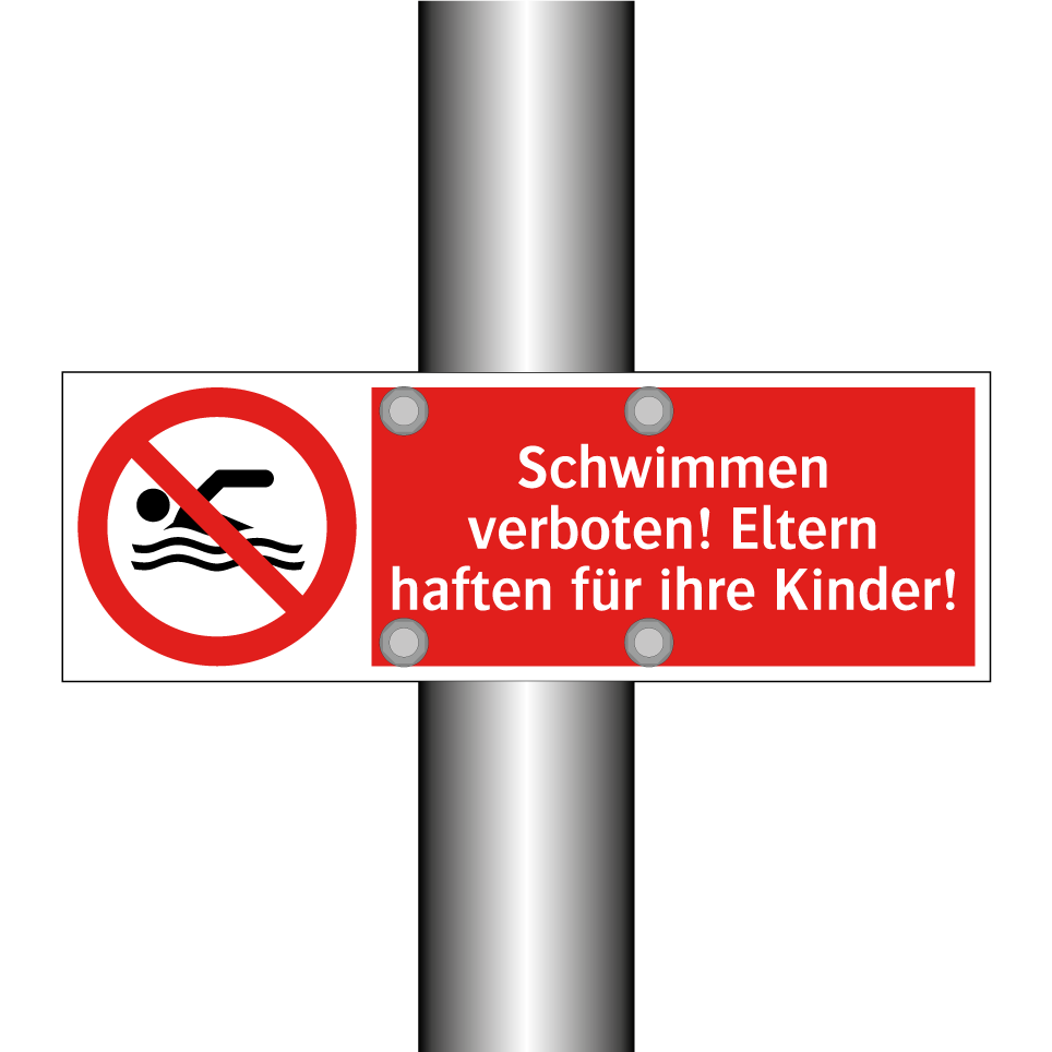 Diese Verbotsschild ist ideal für Schwimmbäder, Seen oder andere Wasserbereiche, wo das Schwimmen untersagt ist. Mit ihrer auffälligen roten Hintergrundfarbe und klaren Symbolik zieht sie sofort die Aufmerksamkeit auf sich und sorgt dafür, dass die Botschaft unmissverständlich ist. Eltern werden daran erinnert, dass sie für die Sicherheit ihrer Kinder verantwortlich sind, was besonders in belebten oder gefährlichen Bereichen wichtig ist. Diese Verbotsschilder können an Eingängen, Zäunen oder in der Nähe von Wasserflächen angebracht werden, um die Sicherheit zu erhöhen und Unfälle zu vermeiden. Perfekt für öffentliche und private Bereiche, wo klare Anweisungen erforderlich sind.