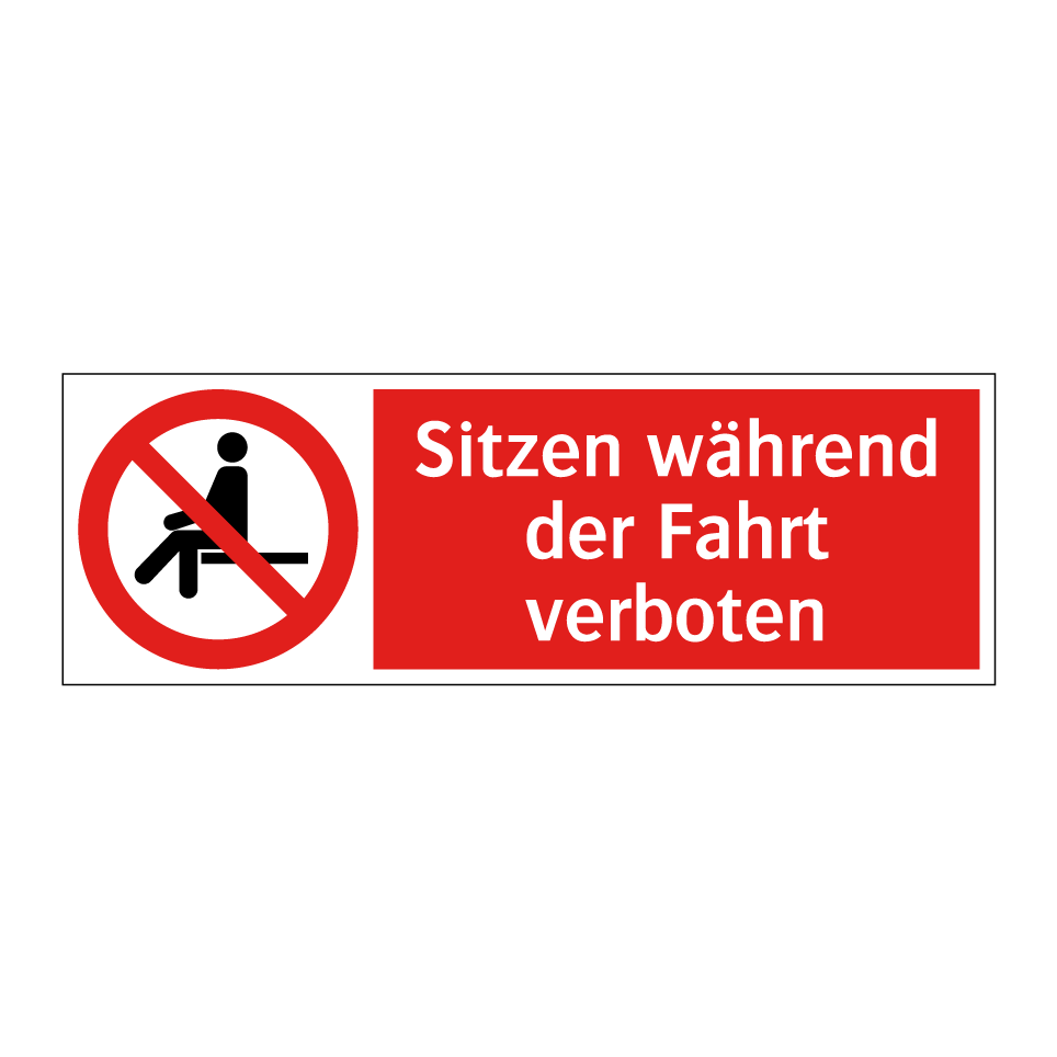 Verbotsschild mit dem Text Sitzen während der Fahrt verboten